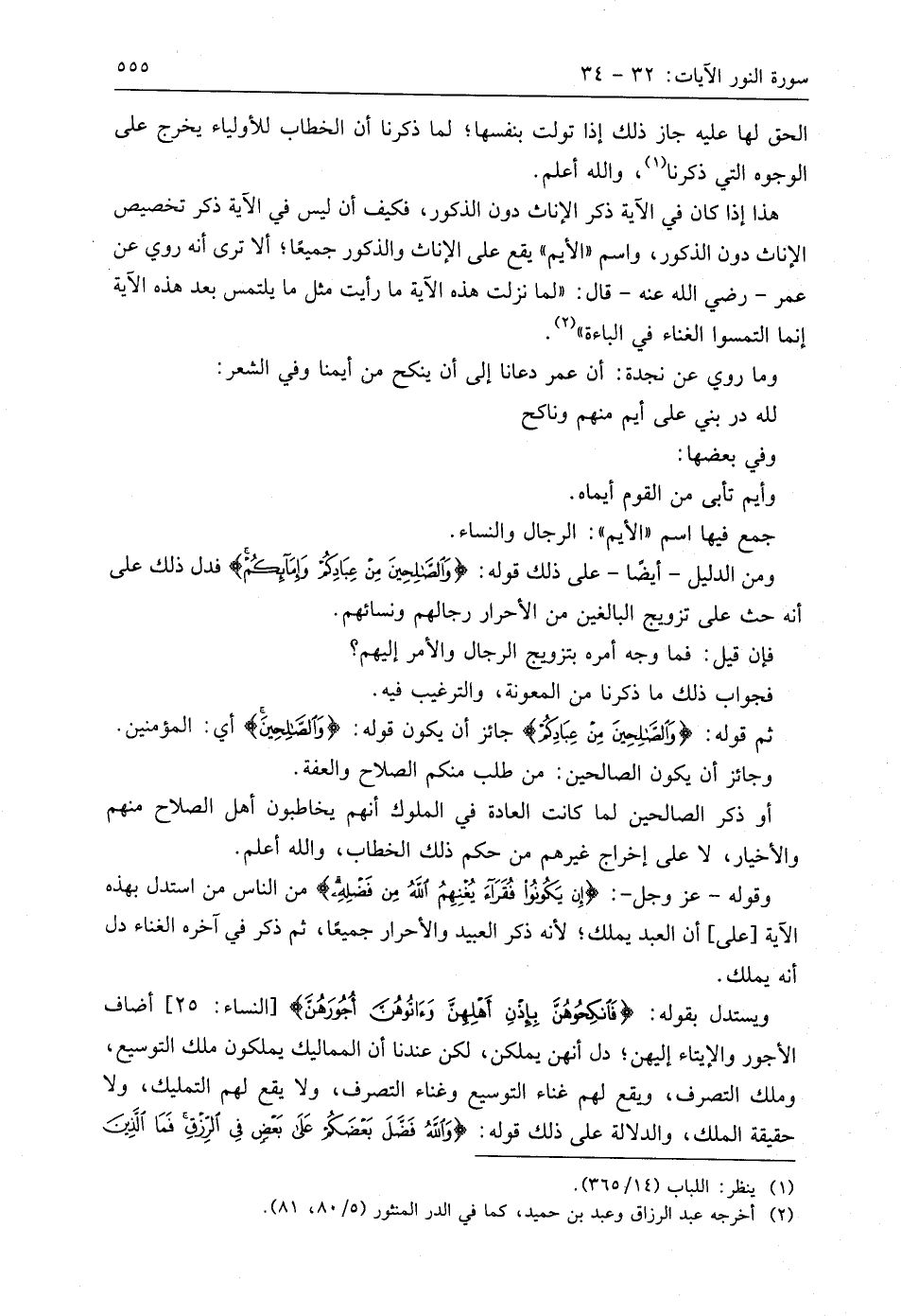 ومن الدليل -أيضًا- على ذلك قوله: (وَالصَّالِحِينَ مِنْ عِبَادِكُمْ وَإِمَائِكُمْ) فدل ذلك على أنه حث على تزويج البالغين من الأحرار رجالهم ونسائهم.