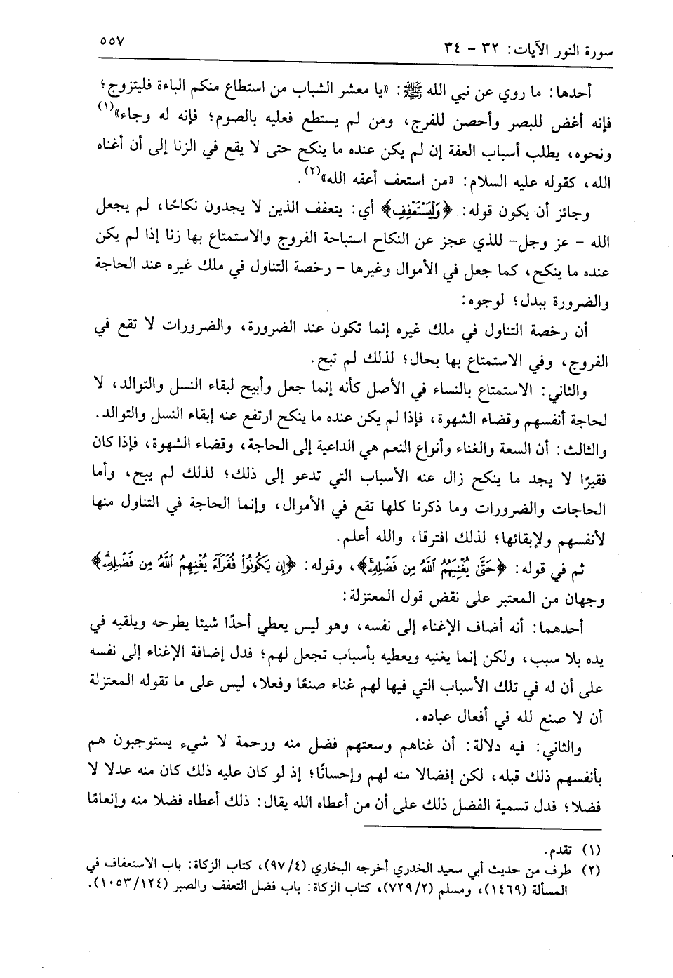 ثم في قوله: (حَتَّى يُغْنِيَهُمُ اللَّهُ مِنْ فَضْلِهِ)، وقوله: (إِنْ يَكُونُوا فُقَرَاءَ يُغْنِهِمُ اللَّهُ مِنْ فَضْلِهِ) ووجهان من المعتبر على نقض قول المعتزلة: