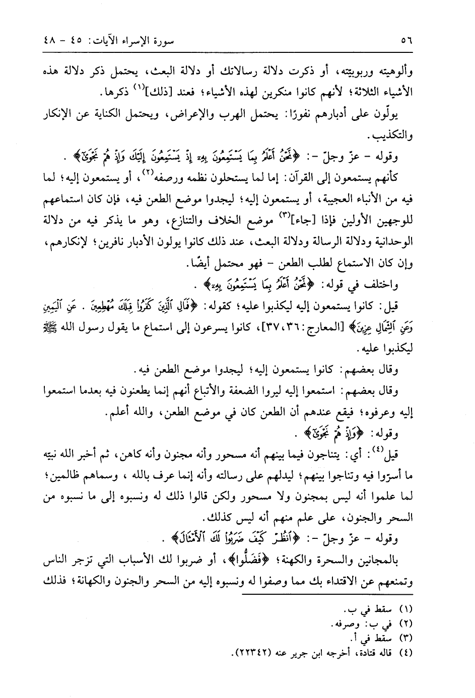وقوله - عَزَّ وَجَلَّ -: (نَحْنُ أَعْلَمُ بِمَا يَسْتَمِعُونَ بِهِ إِذْ يَسْتَمِعُونَ إِلَيْكَ وَإِذْ هُمْ نَجْوَى إِذْ يَقُولُ الظَّالِمُونَ إِنْ تَتَّبِعُونَ إِلَّا رَجُلًا مَسْحُورًا (47)