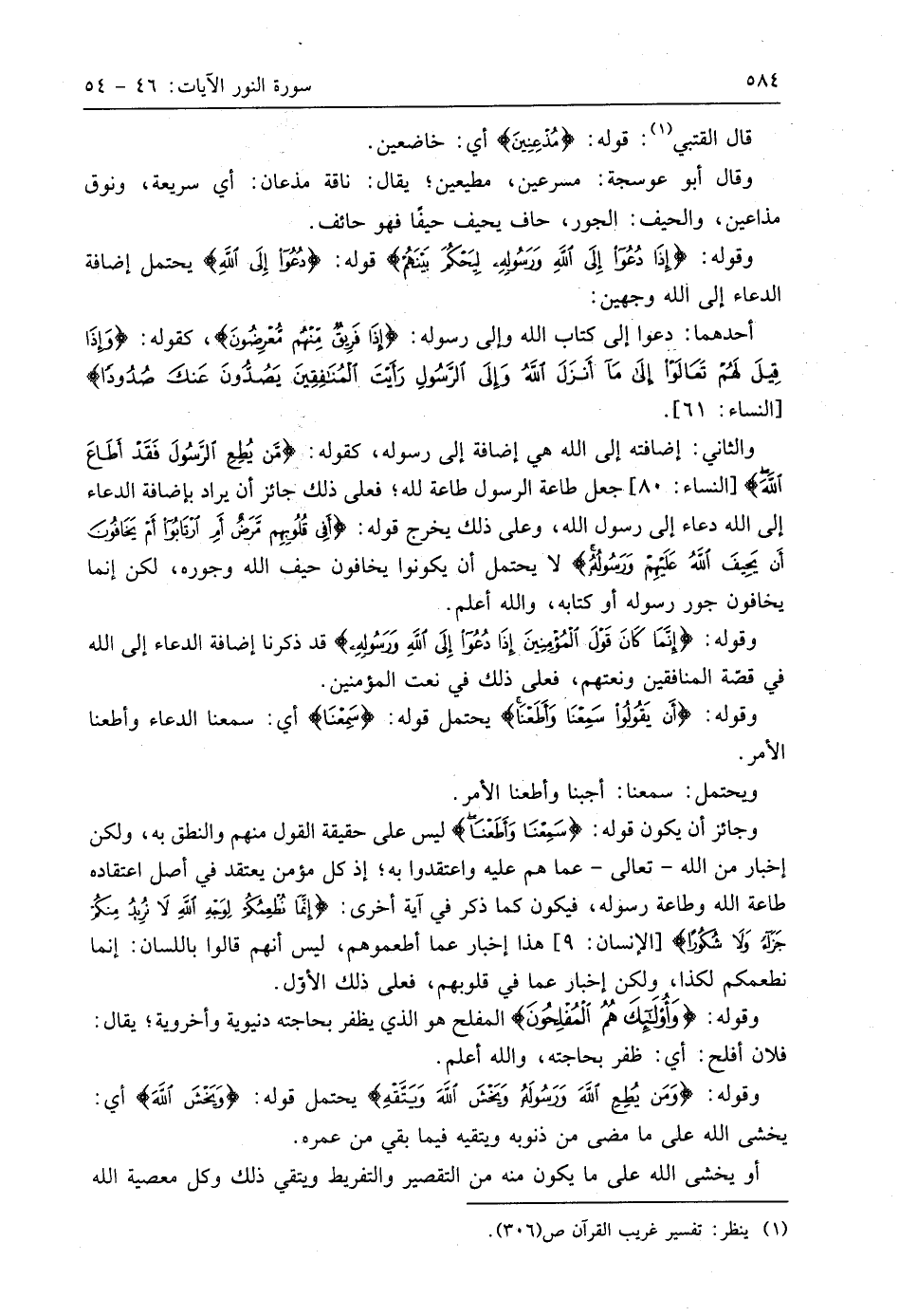 وقوله: (وَإِذَا دُعُوا إِلَى اللَّهِ وَرَسُولِهِ لِيَحْكُمَ بَيْنَهُمْ) قوله: (دُعُوا إِلَى اللَّهِ) يحتمل إضافة الدعاء إلى اللَّه وجهين: