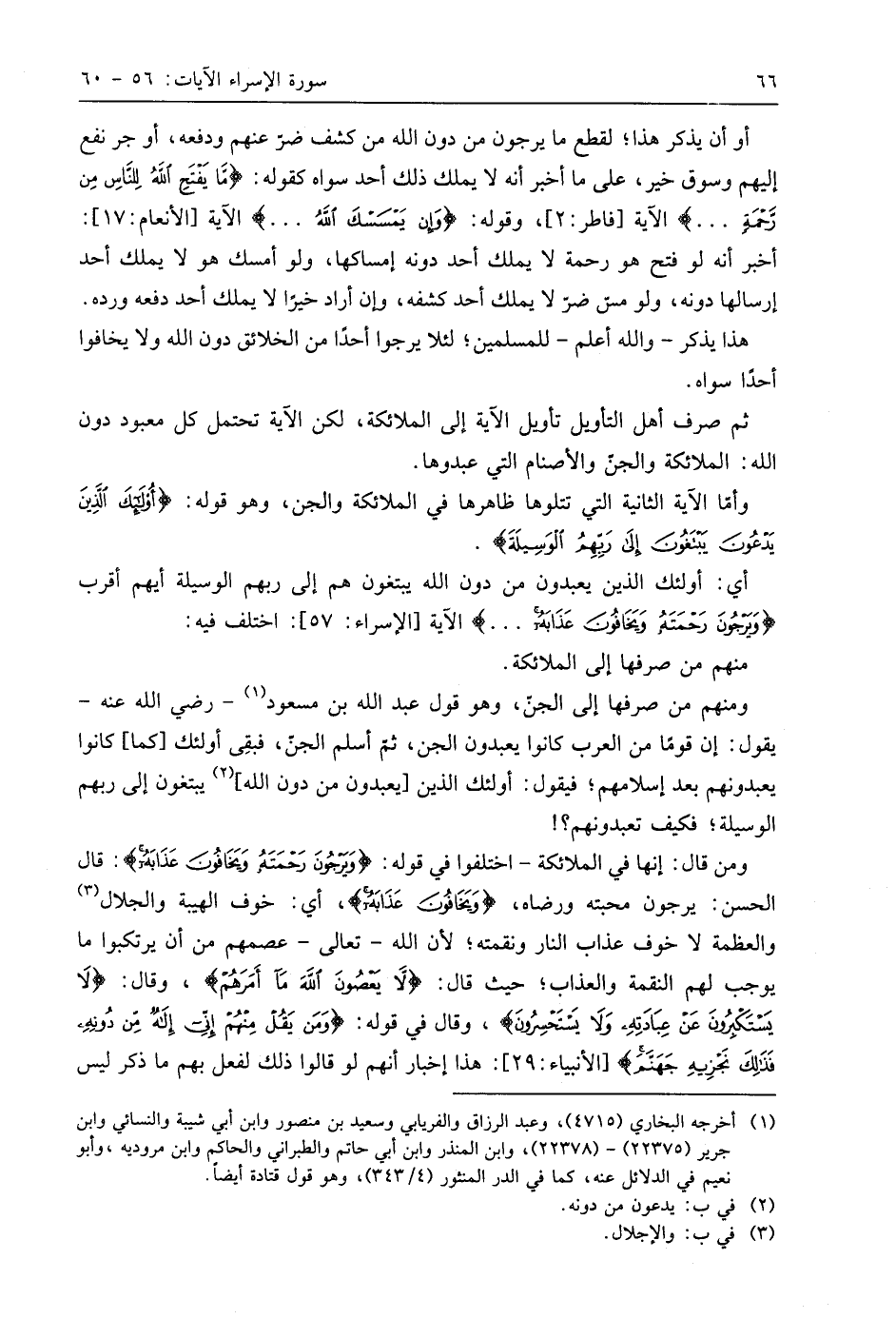 وأمَّا الآية الثانية التي تتلوها ظاهرها في الملائكة والجن، وهو قوله: (أُولَئِكَ الَّذِينَ يَدْعُونَ يَبْتَغُونَ إِلَى رَبِّهِمُ الْوَسِيلَةَ ... (57)