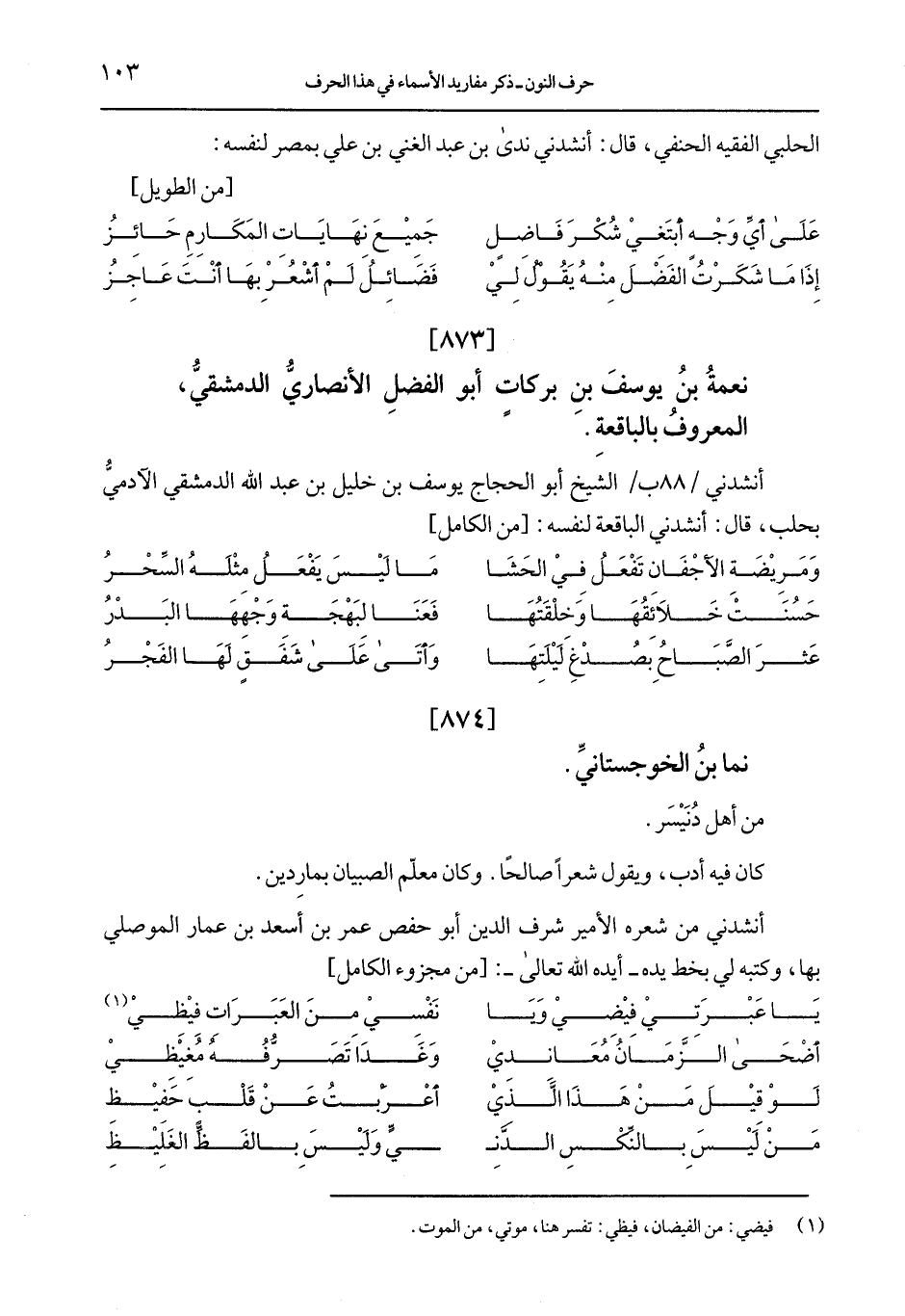 الحلبي الفقيه الحنفي، قال: أنشدني ندى بن عبد الغني بن علي بمصر لنفسه: