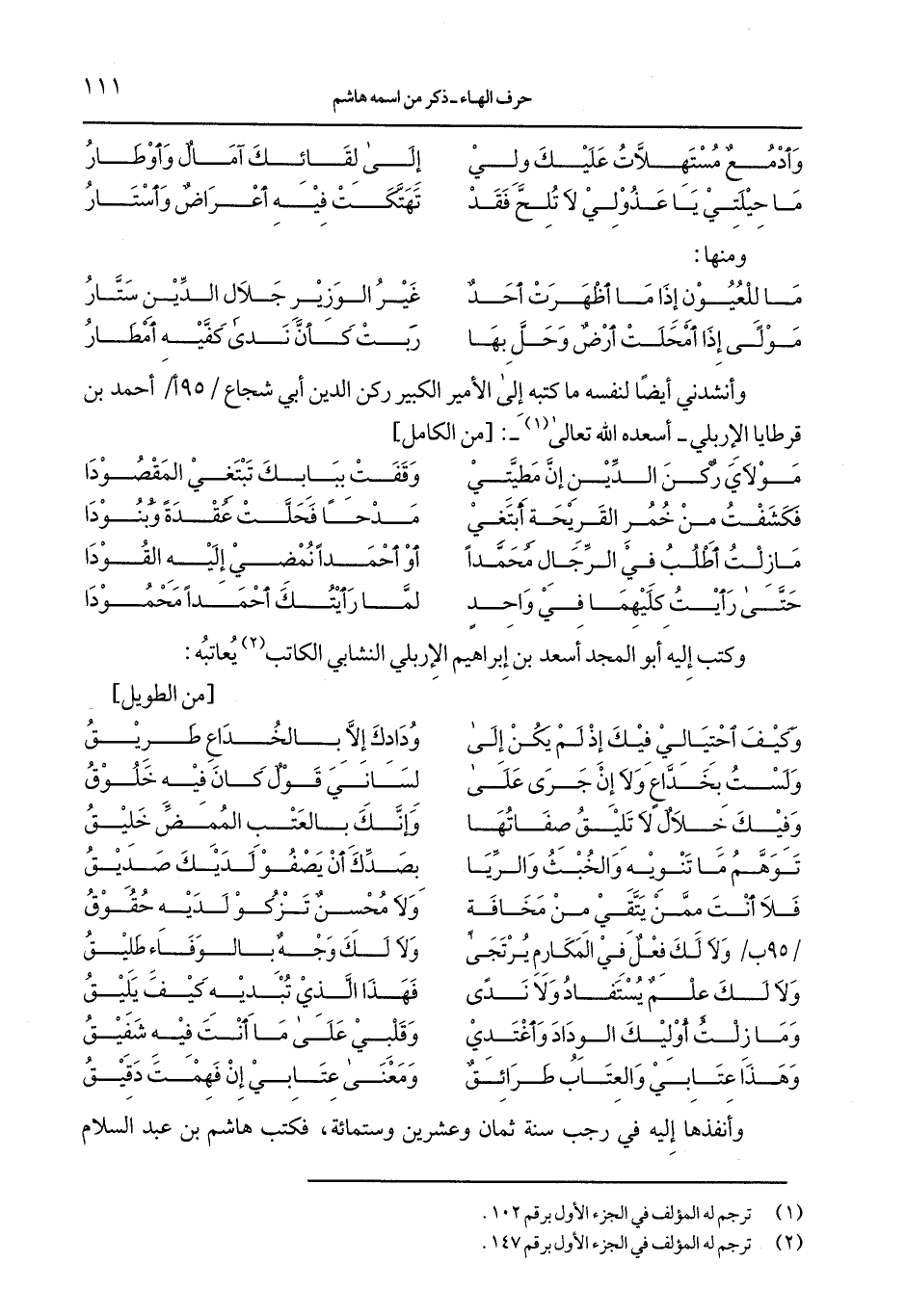 وأنشدني أيضا لنفسه ما كتبه إلى الأمير الكبير ركن الدين أبي شجاع/95 أ/ أحمد بن قرطايا الإربليّ-أسعده الله تعالى- (1): [من الكامل]