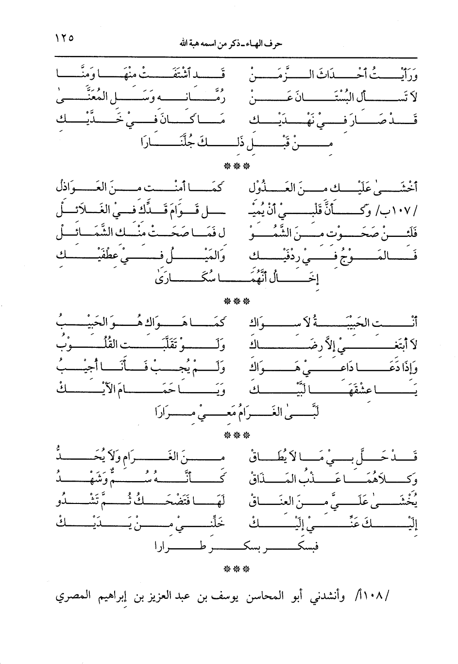 /108 أ/ وأنشدني أبو المحاسن يوسف ين عبد العزيز بن إبراهيم المصري