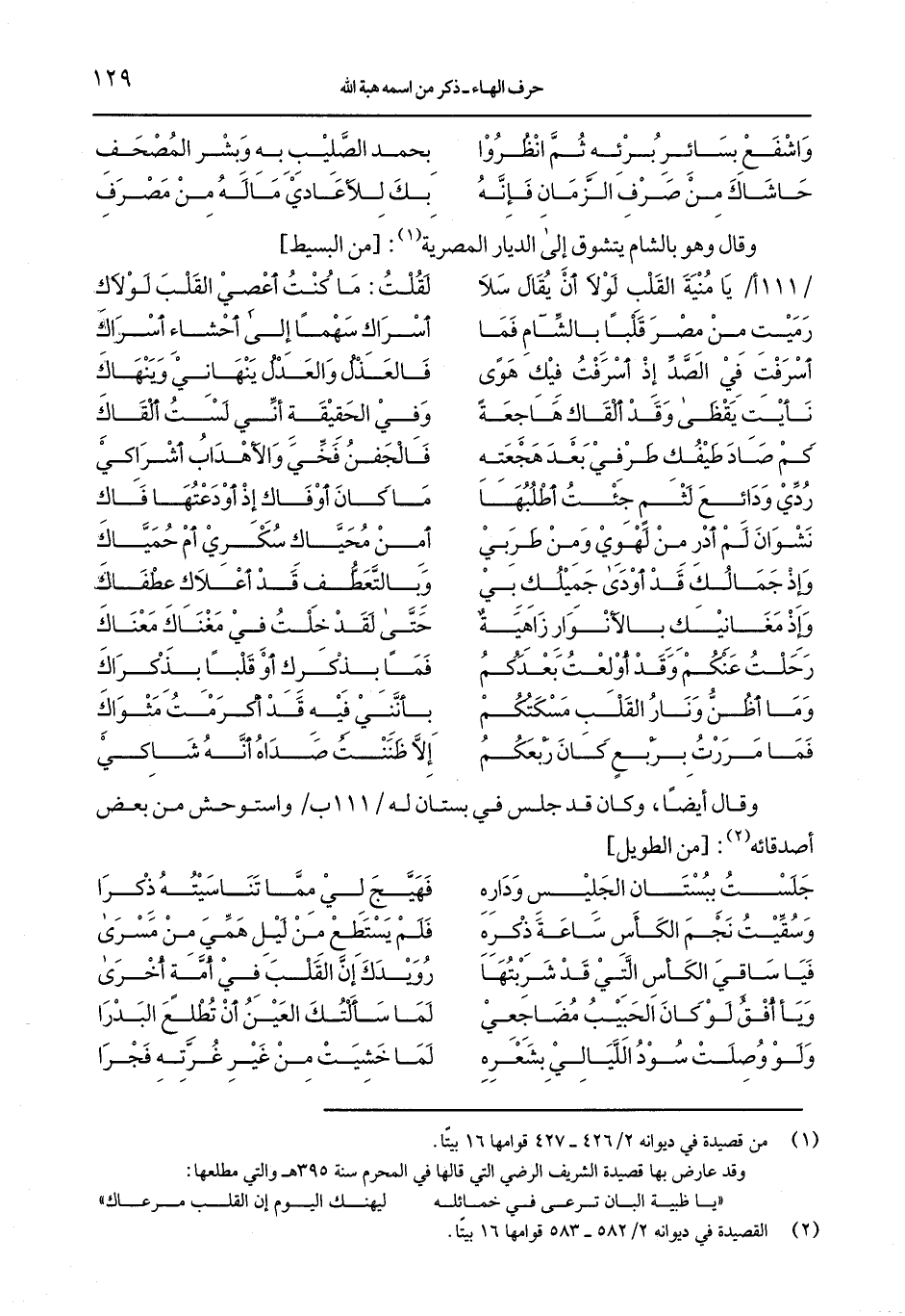 /111 أ/ يا منية القلب لولا أن يقال سلا ... قلت: ما كنت أعصي القلب لولاك
