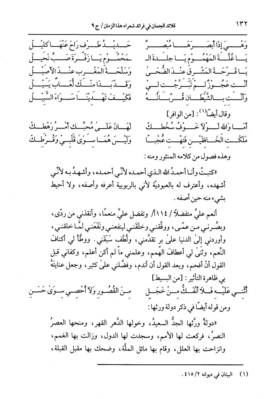 كتاب قلائد الجمان في فرائد شعراء هذا الزمان (اسم الجزء: 7)