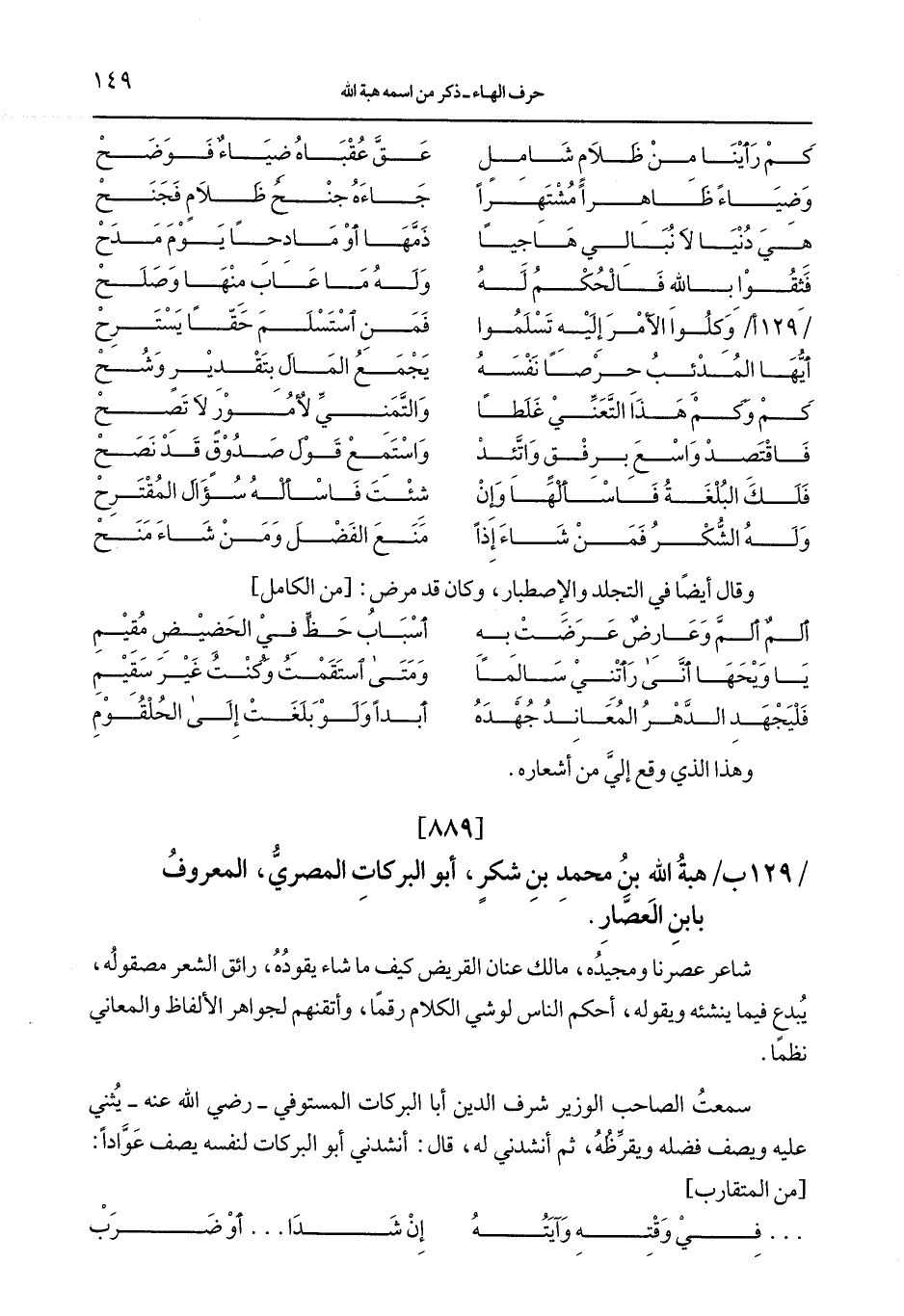 /129 ب/ هبة الله بن محمد بن شكر، أبو البركات المصرىّ، المعروف بابن العصّار.