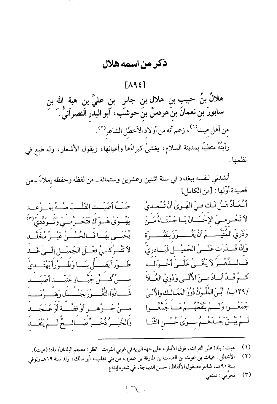 هلال بن حبيب بن هلال بن جابر بن علىّ بن هبة الله بن