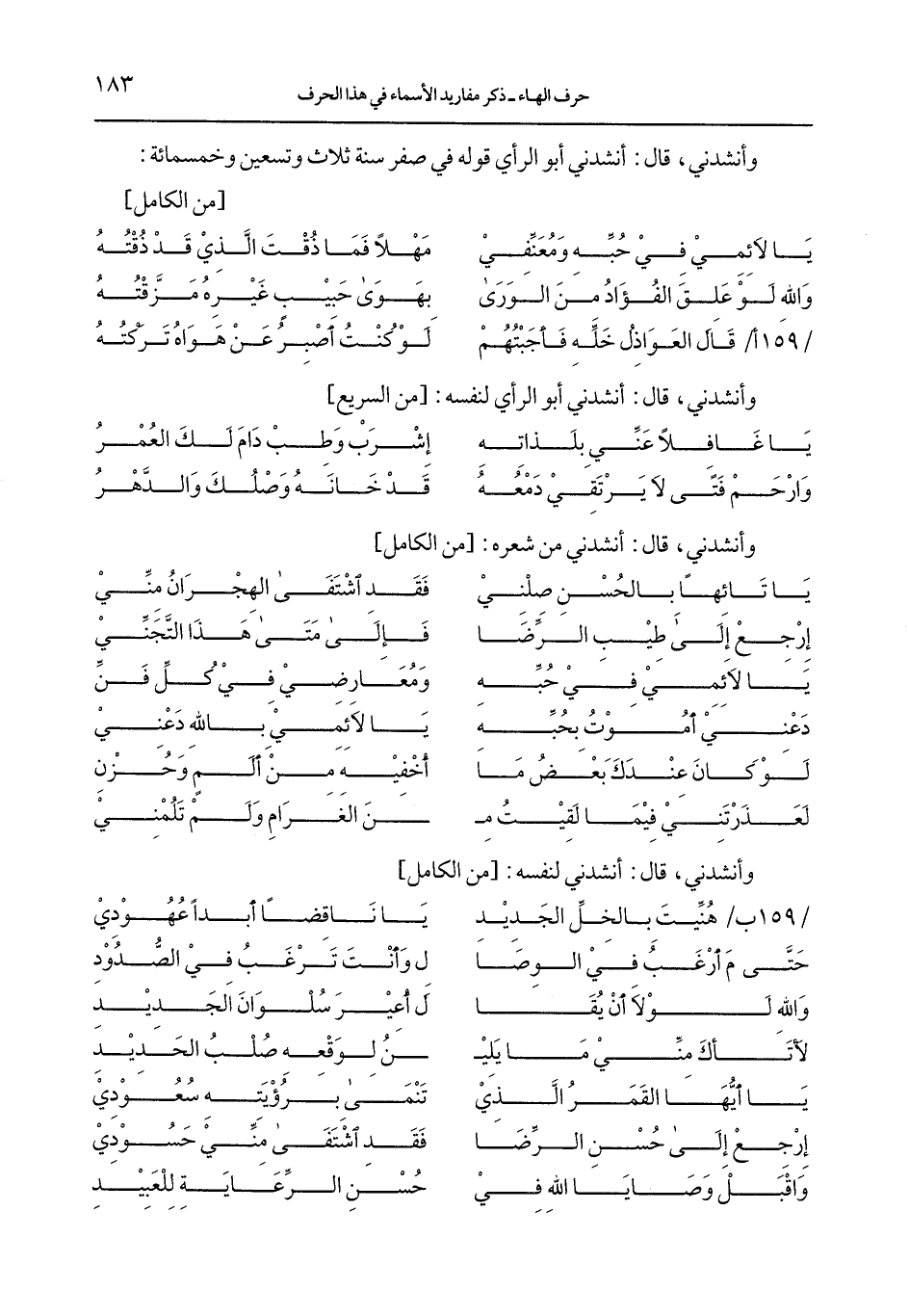/159 ب/ هنِّيت بالخلِّ الجديد ... يا ناقصاً ابداً عهودى