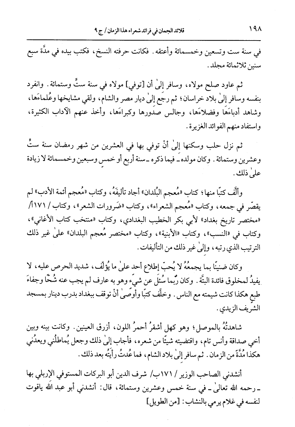 كتاب قلائد الجمان في فرائد شعراء هذا الزمان (اسم الجزء: 7)