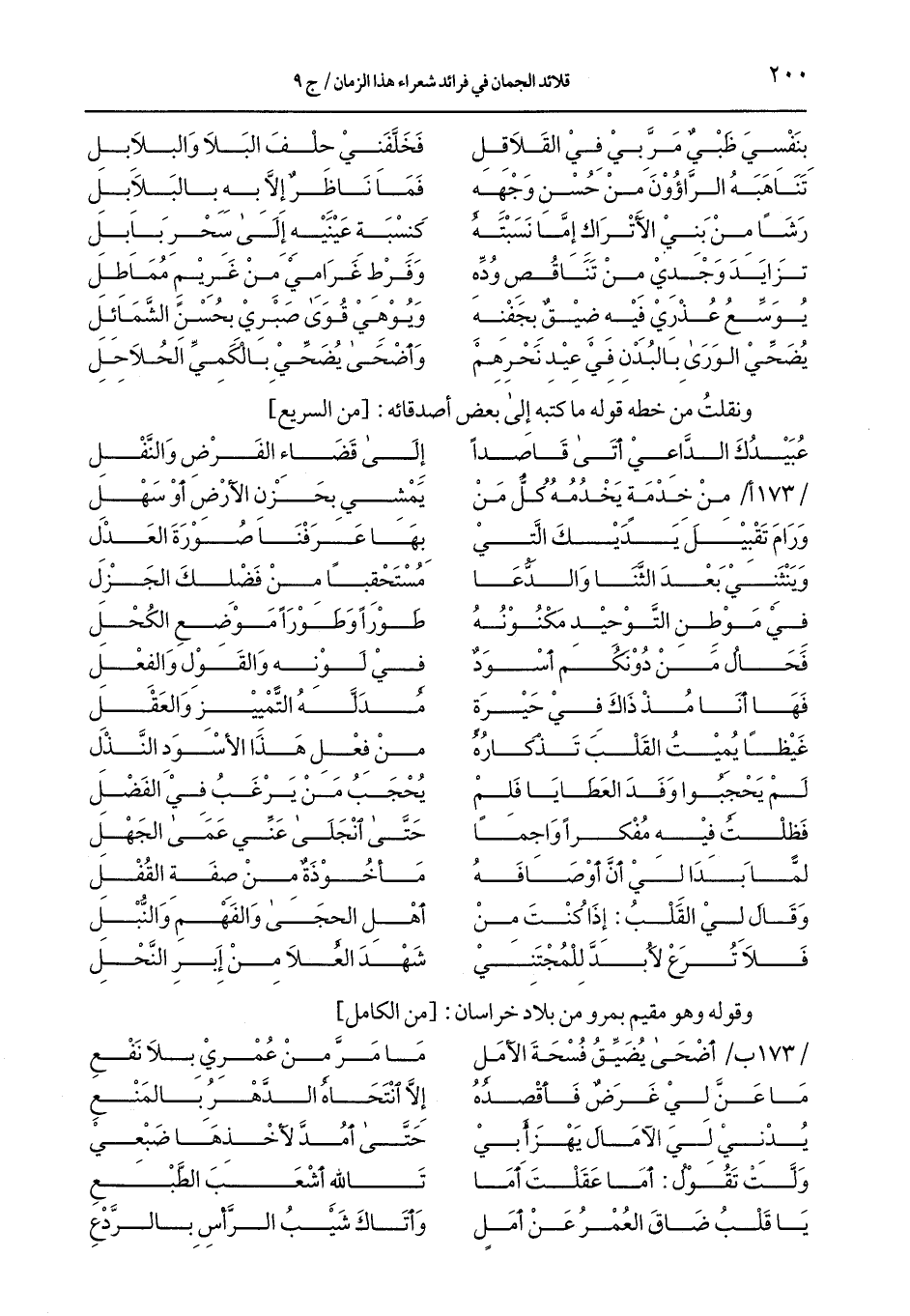 كتاب قلائد الجمان في فرائد شعراء هذا الزمان (اسم الجزء: 7)