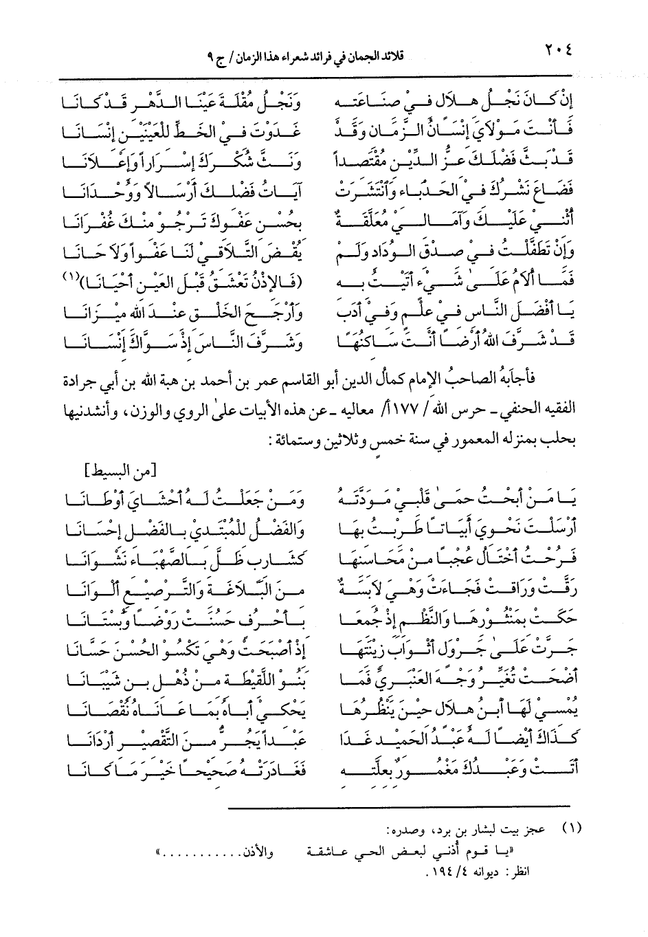 فأجابه الصاحب الإمام كمال الدين أبو القاسم عمر بن احمد بن هبة الله بن أبى