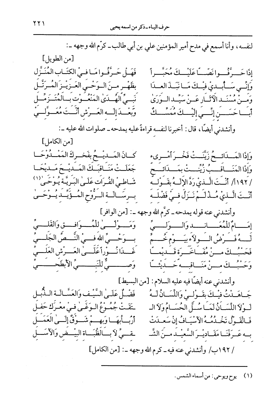 /192 أ/ أنت الَّذي ردَّ الإله بقوله ... شاطي الفرات على البريَّة يوحى