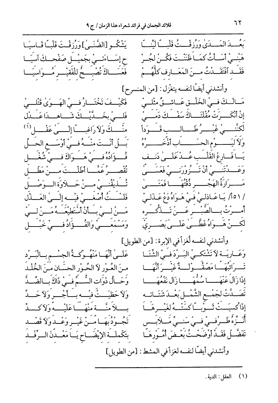 كتاب قلائد الجمان في فرائد شعراء هذا الزمان (اسم الجزء: 7)