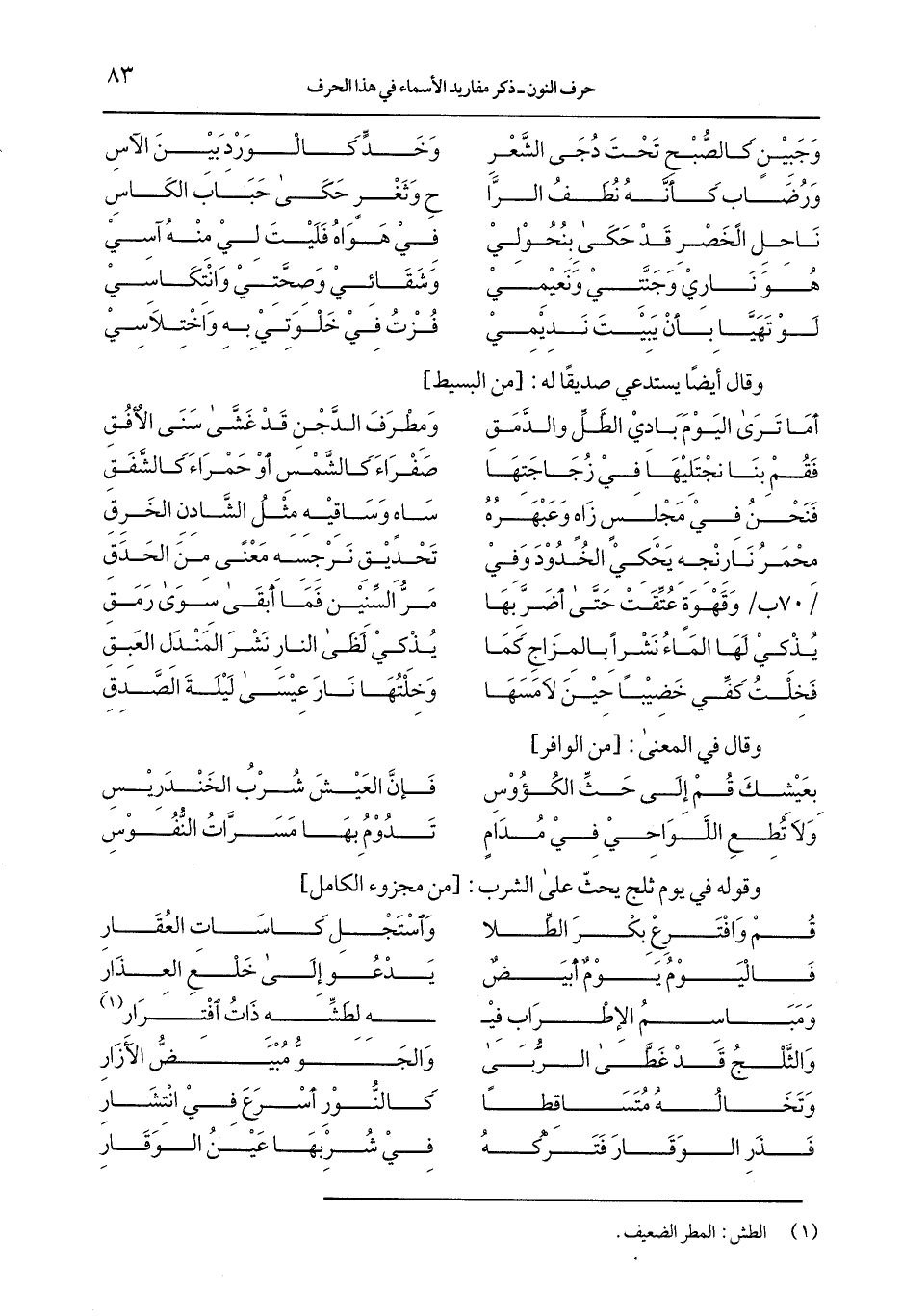 وقوله في يوم ثلج يحث على الشرب: [من مجزوء الكامل]