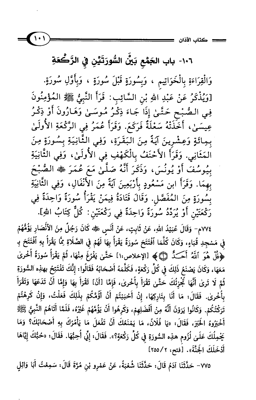 106 - باب الجَمْعِ بَيْن السُّورَتَيْنِ فِي الرَّكْعَةِ
