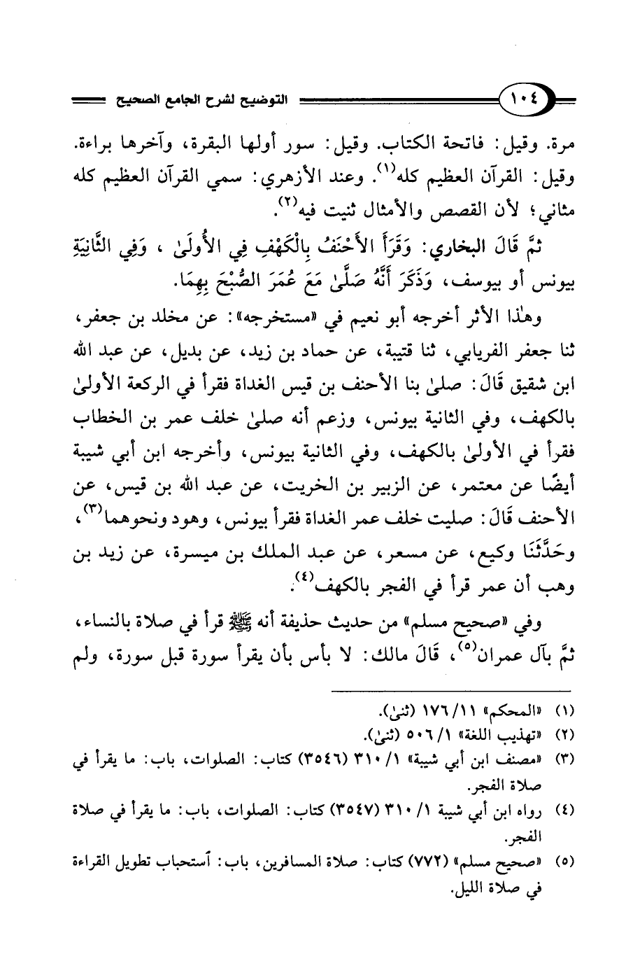 (¬4) رواه ابن أبي شيبة 1/ 310 (3547) كتاب: الصلوات، باب: ما يقرأ في صلاة الفجر.