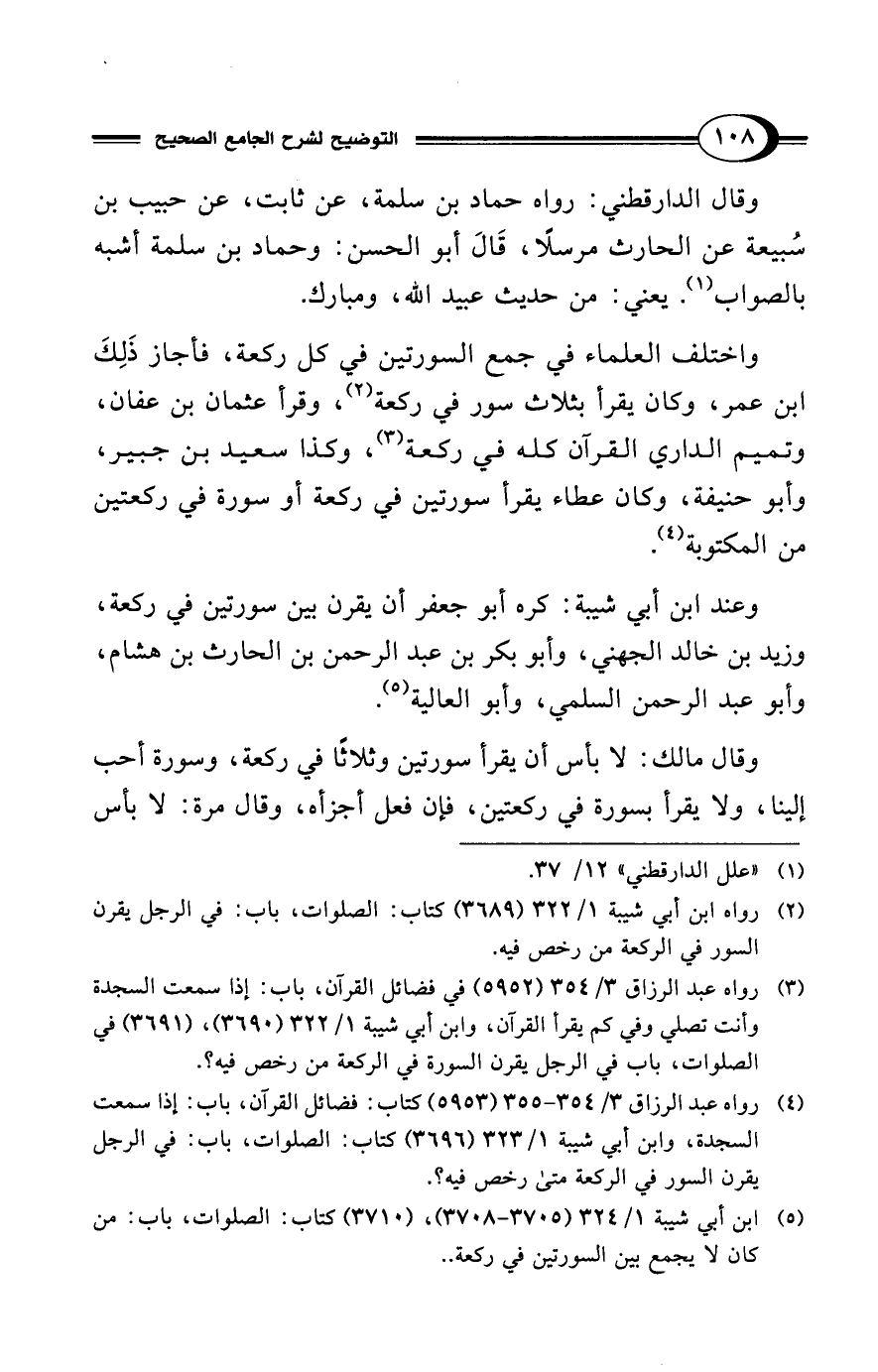 (¬5) ابن أبي شيبة 1/ 324 (3705 - 3708)، (3710) كتاب: الصلوات، باب: من كان لا يجمع بين السورتين في ركعة ..