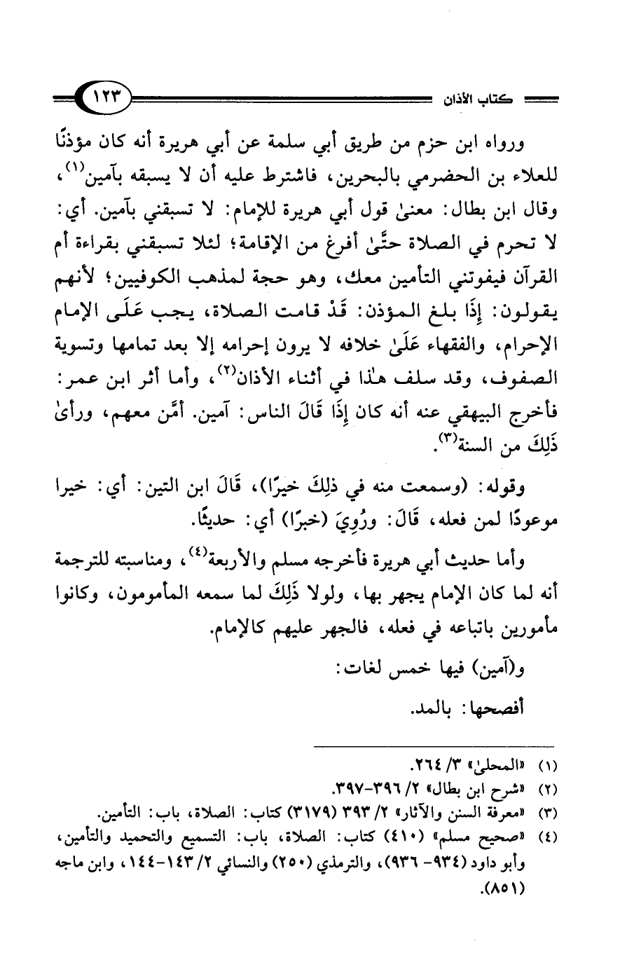 (¬3) "معرفة السنن والآثار" 2/ 393 (3179) كتاب: الصلاة، باب: التأمين.