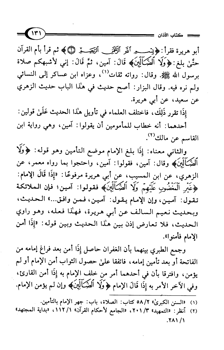 (¬1) "السنن الكبرى" 2/ 58 كتاب: الصلاة، باب: جهر الإمام بالتأمين.