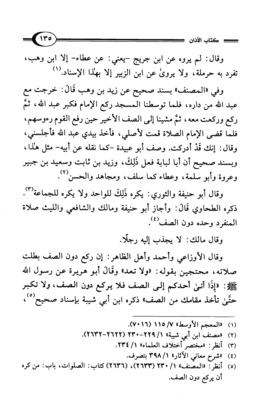 (¬5) انظر: "المصنف" 1/ 230 (2633)، (2636) كتاب: الصلوات، باب: من كره أن يركع دون الصف.