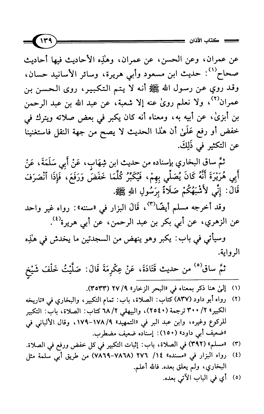 (¬2) رواه أبو داود (837) كتاب: الصلاة، باب: تمام التكبير، والبخاري في "تاريخه الكبير" 2/ 300 ترجمة (2540)، والبيهقي 2/ 68 كتاب: الصلاة، باب: التكبير للركوع وغيره، وابن عبد البر في "التمهيد" 9/ 178 - 179، وقال الألباني في "ضعيف أبي داود" (150): إسناده ضعيف مضطرب.