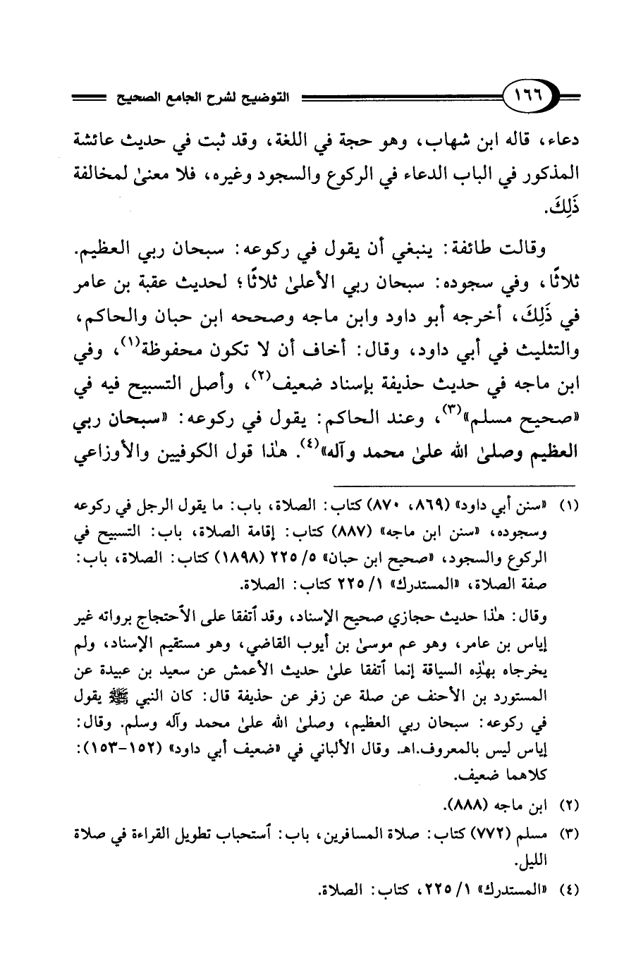 (¬1) "سنن أبي داود" (869، 870) كتاب: الصلاة، باب: ما يقول الرجل في ركوعه وسجوده، "سنن ابن ماجه" (887) كتاب: إقامة الصلاة، باب: التسبيح في الركوع والسجود، "صحيح ابن حبان" 5/ 225 (1898) كتاب: الصلاة، باب: صفة الصلاة، "المستدرك" 1/ 225 كتاب: الصلاة.