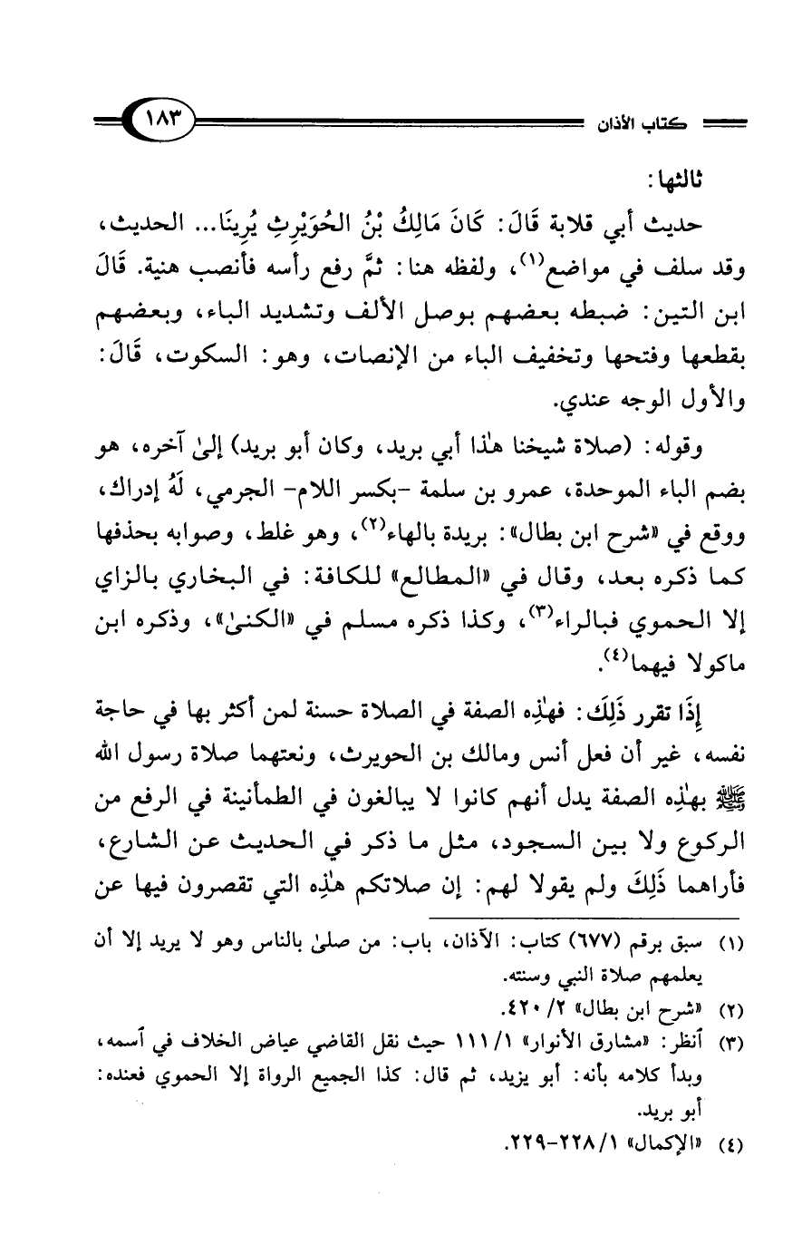 (¬3) انظر: "مشارق الأنوار" 1/ 111 حيث نقل القاضي عياض الخلاف في اسمه، وبدأ كلامه بأنه: أبو يزيد، ثم قال: كذا الجميع الرواة إلا الحموي فعنده: أبو بريد.