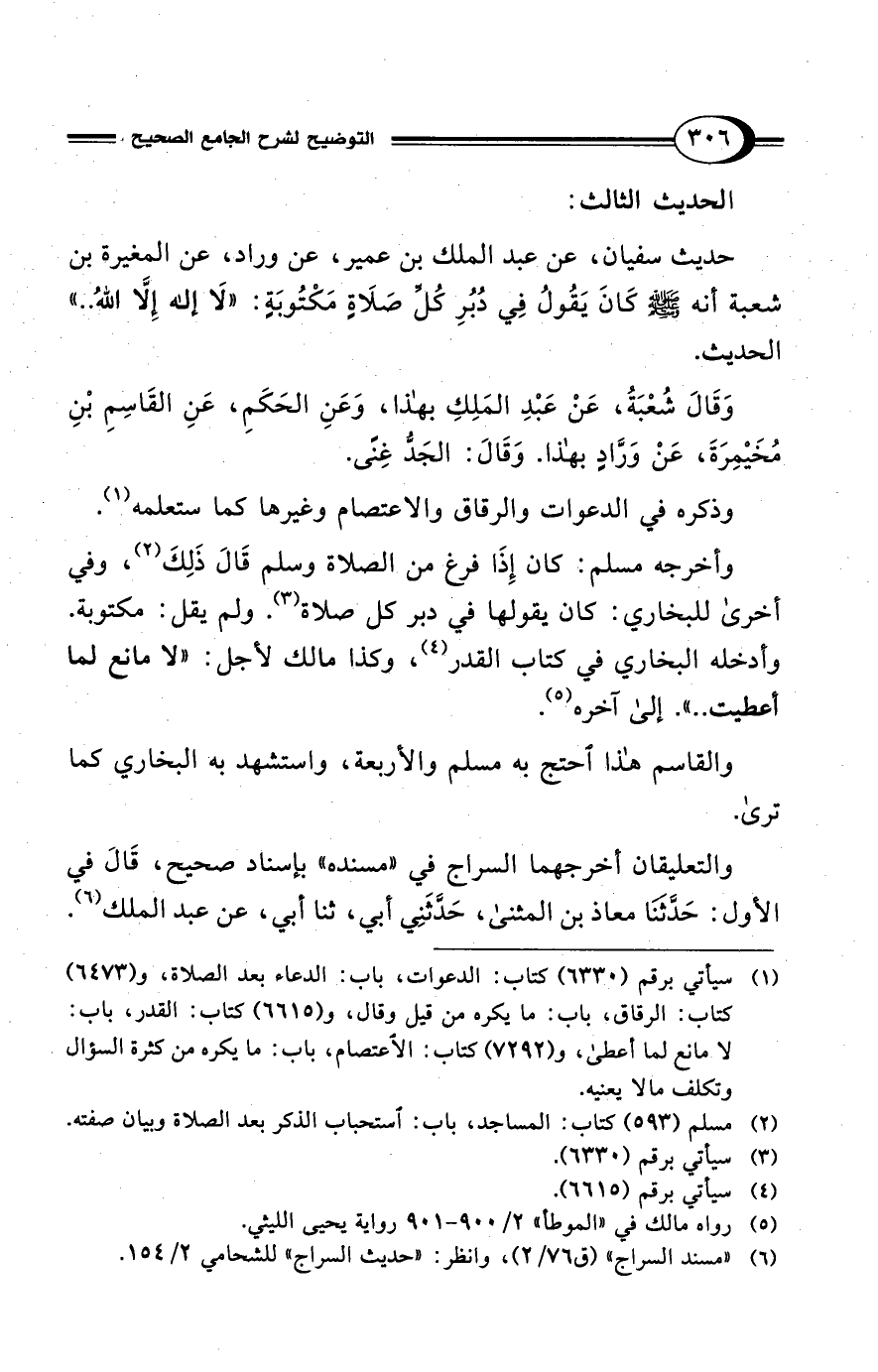 (¬2) مسلم (593) كتاب: المساجد، باب: استحباب الذكر بعد الصلاة وبيان صفته.