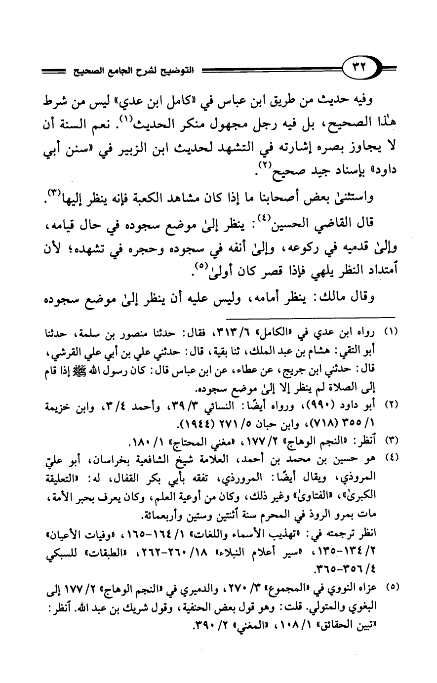 وفيه حديث من طريق ابن عباس في "كامل ابن عدي" ليس من شرط هذا الصحيح، بل فيه رجل مجهول منكر الحديث (¬1). نعم السنة أن لا يجاوز بصره إشارته في التشهد لحديث ابن الزبير في "سنن أبي داود" بإسناد جيد صحيح (¬2).