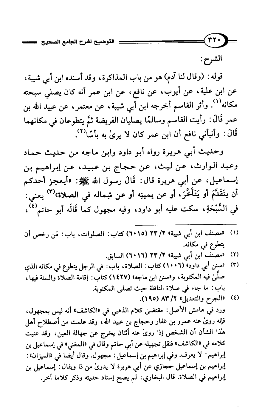 (¬1) "مصنف ابن أبي شيبة" 2/ 23 (6015) كتاب: الصلوات، باب: مَن رخص أن يتطوع في مكانه.