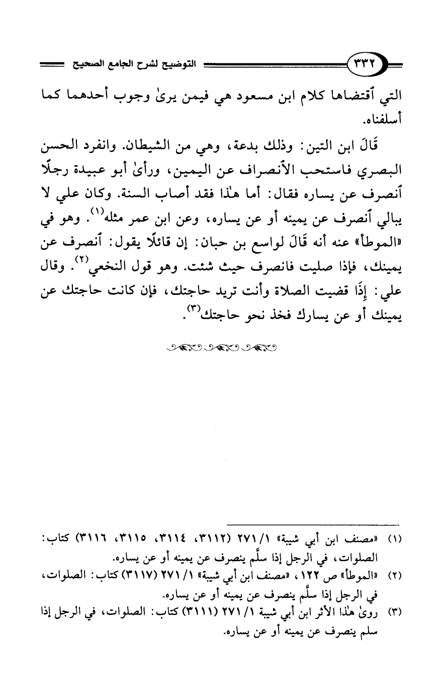 (¬2) "الموطأ" ص 122، "مصنف ابن أبي شيبة" 1/ 271 (3117) كتاب: الصلوات، في الرجل إذا سلَّم ينصرف عن يمينه أو عن يساره.