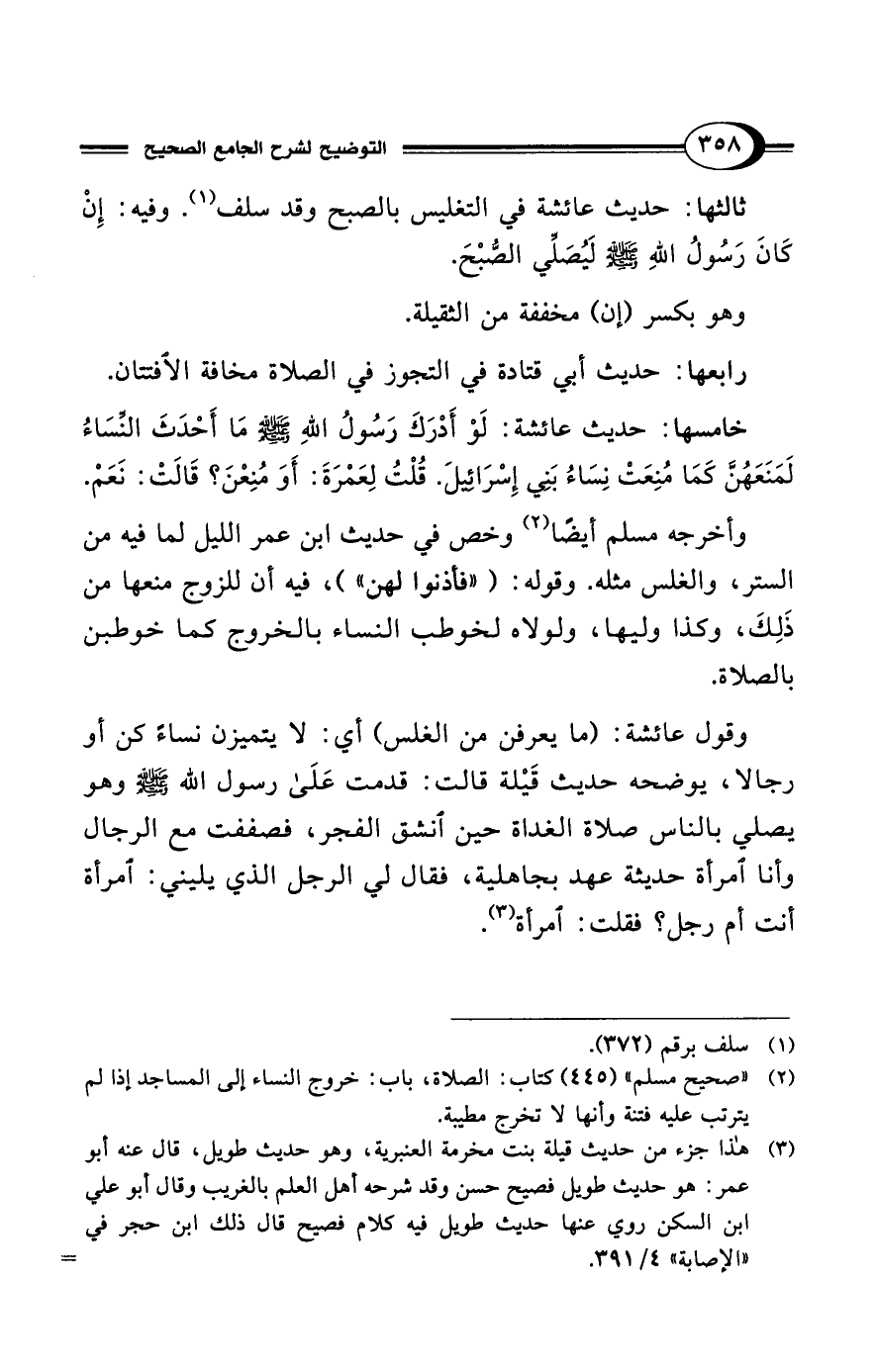 (¬2) "صحيح مسلم" (445) كتاب: الصلاة، باب: خروج النساء إلى المساجد إذا لم يترتب عليه فتنة وأنها لا تخرج مطيبة.
