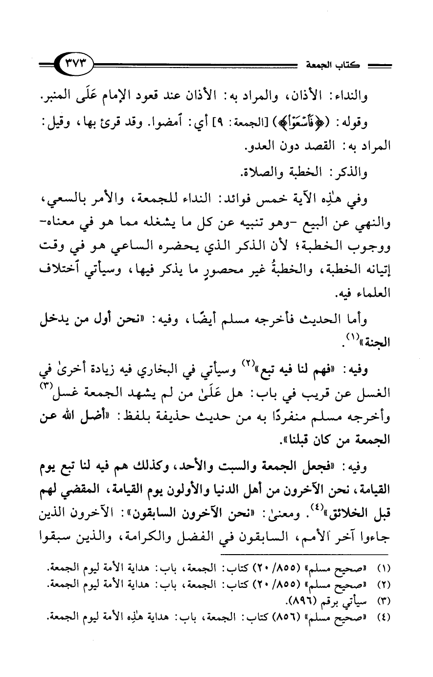 (¬4) "صحيح مسلم" (856) كتاب: الجمعة، باب: هداية هذِه الأمة ليوم الجمعة.