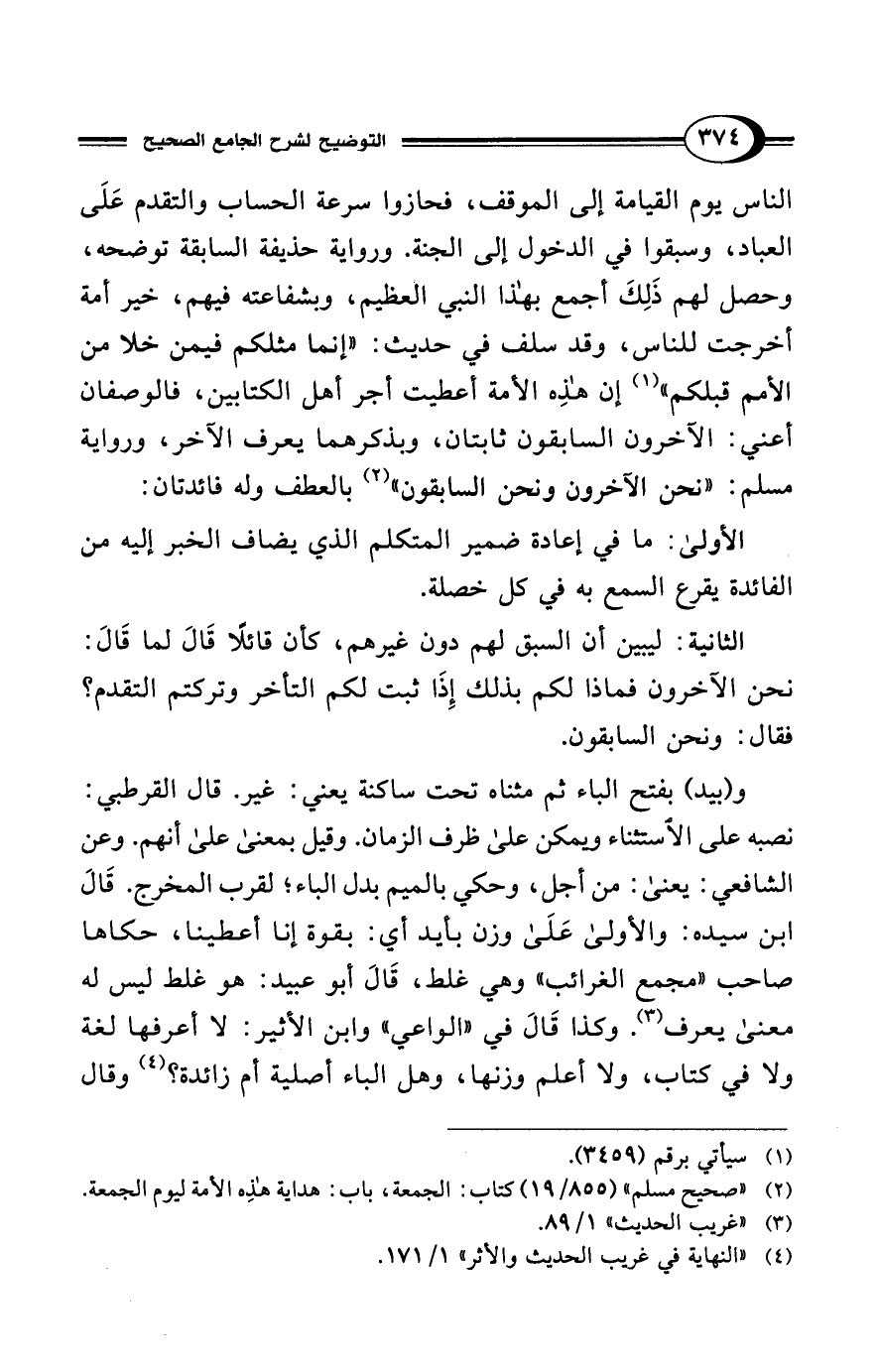 (¬2) "صحيح مسلم" (855/ 19) كتاب: الجمعة، باب: هداية هذِه الأمة ليوم الجمعة.