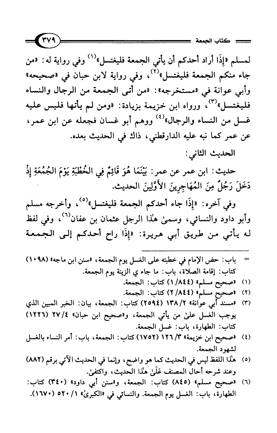 (¬3) "مسند أبي عوانة" 2/ 138 (2594) كتاب: الجمعة، بيان: الخبر المبين الذي يوجب الغسل على من يأتي الجمعة، و"صحيح ابن حبان" 4/ 27 (1226) كتاب: الطهارة، باب: غسل الجمعة.