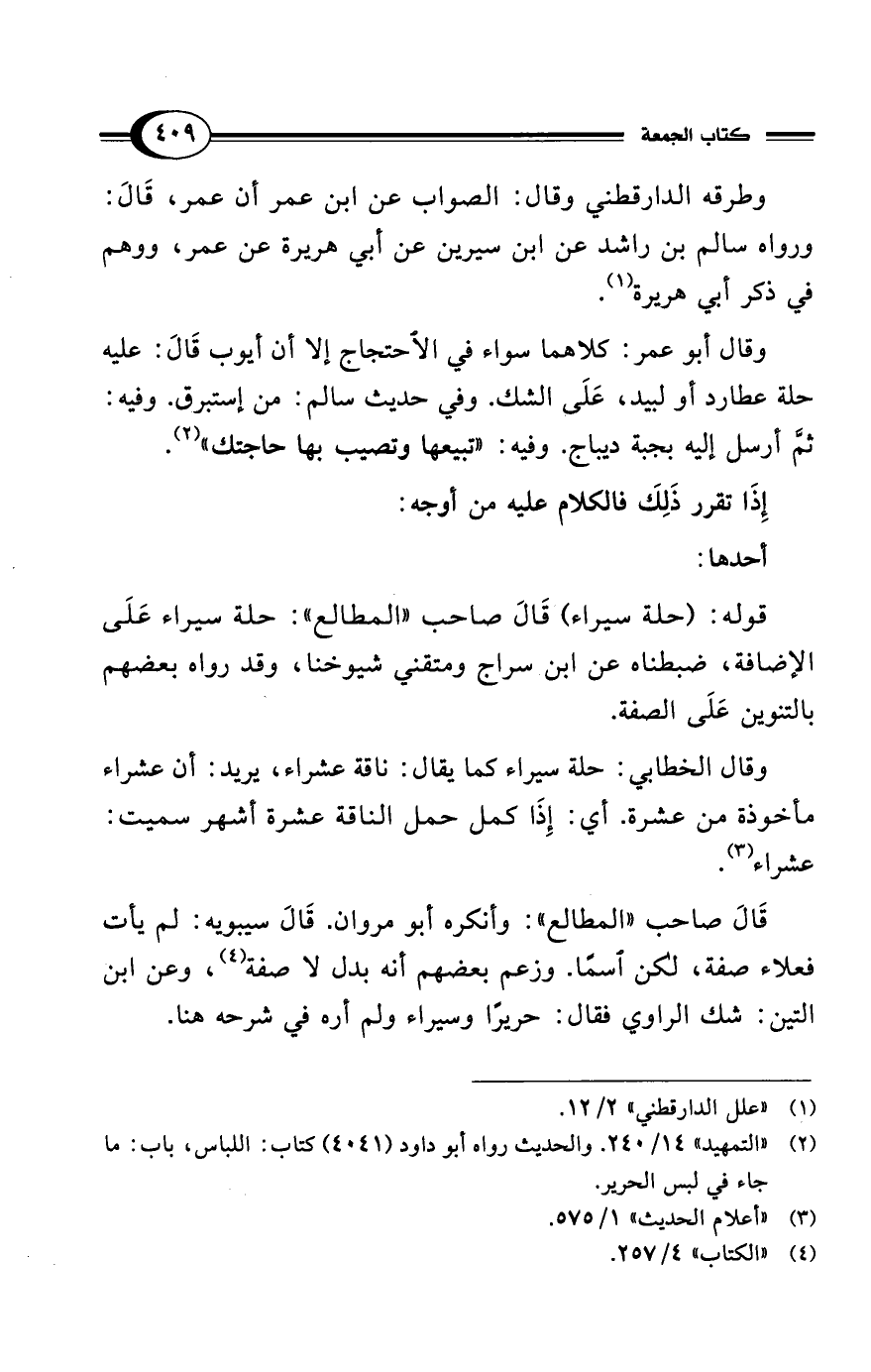 (¬2) "التمهيد" 14/ 240. والحديث رواه أبو داود (4041) كتاب: اللباس، باب: ما جاء في لبس الحرير.