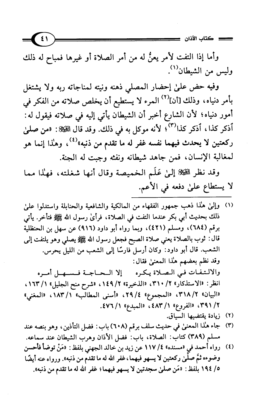 وأما إذا التفت لأمر يعنُّ له من أمر الصلاة أو غيرها فمباح له ذلك وليس من الشيطان (¬1).