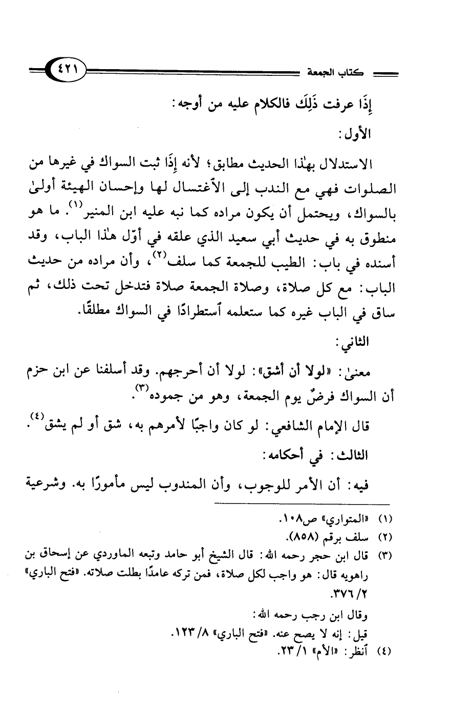 معنى: "لولا أن أشق": لولا أن أحرجهم. وقد أسلفنا عن ابن حزم أن السواك فرضٌ يوم الجمعة، وهو من جموده (¬3).