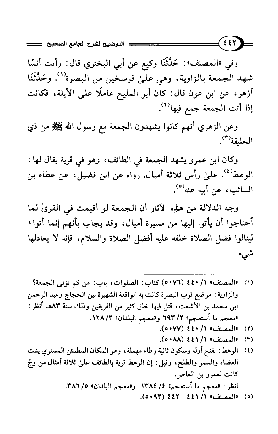(¬1) "المصنف" 1/ 440 (5076) كتاب: الصلوات، باب: من كم تؤتى الجمعة؟