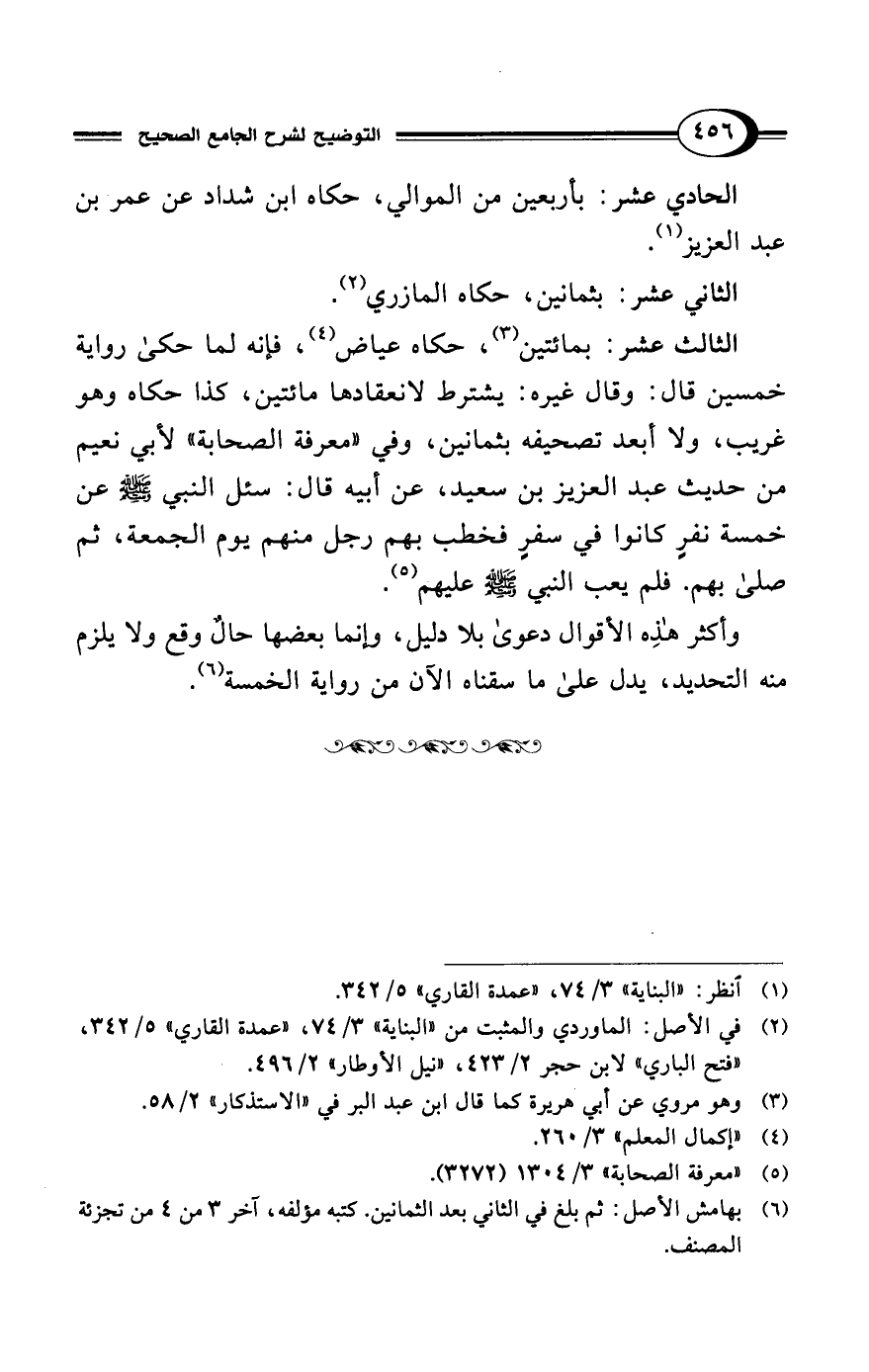وأكثر هذِه الأقوال دعوى بلا دليل، وإنما بعضها حالٌ وقع ولا يلزم منه التحديد، يدل على ما سقناه الآن من رواية الخمسة (¬6).