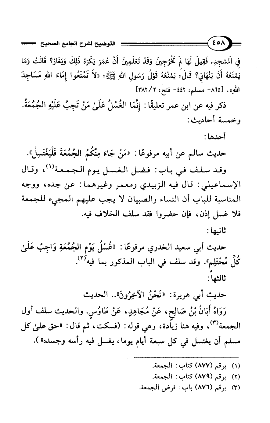حديث سالم عن أبيه مرفوعًا: "مَنْ جَاءَ مِنْكُمُ الجُمُعَةَ فَلْيَغْتَسِلْ".