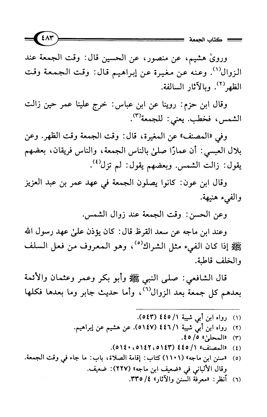 (¬5) "سنن ابن ماجه" (1101) كتاب: إقامة الصلاة، باب: ما جاء في وقت الجمعة.