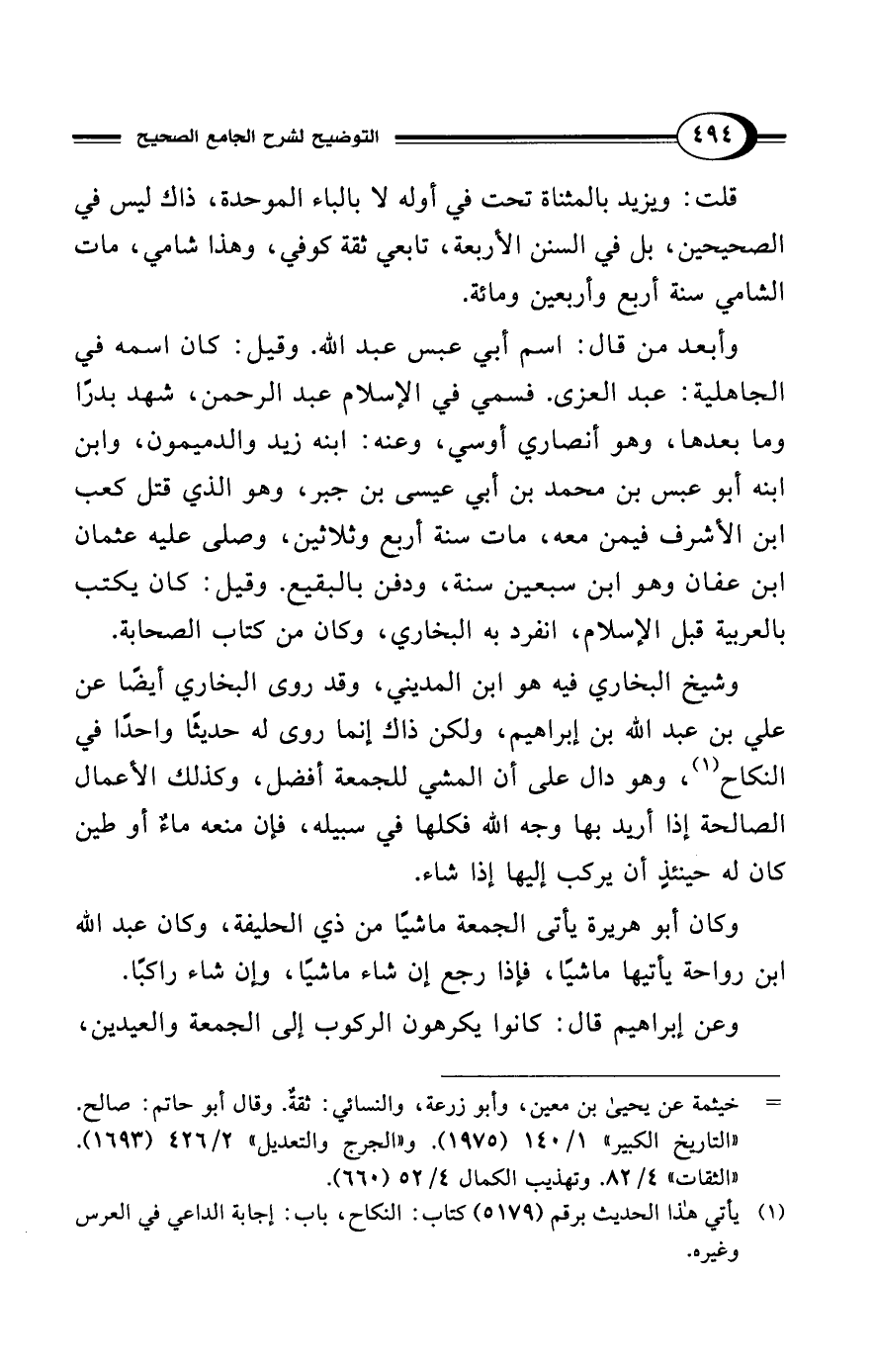 "التاريخ الكبير" 1/ 140 (1975). و"الجرح والتعديل" 2/ 426 (1693).