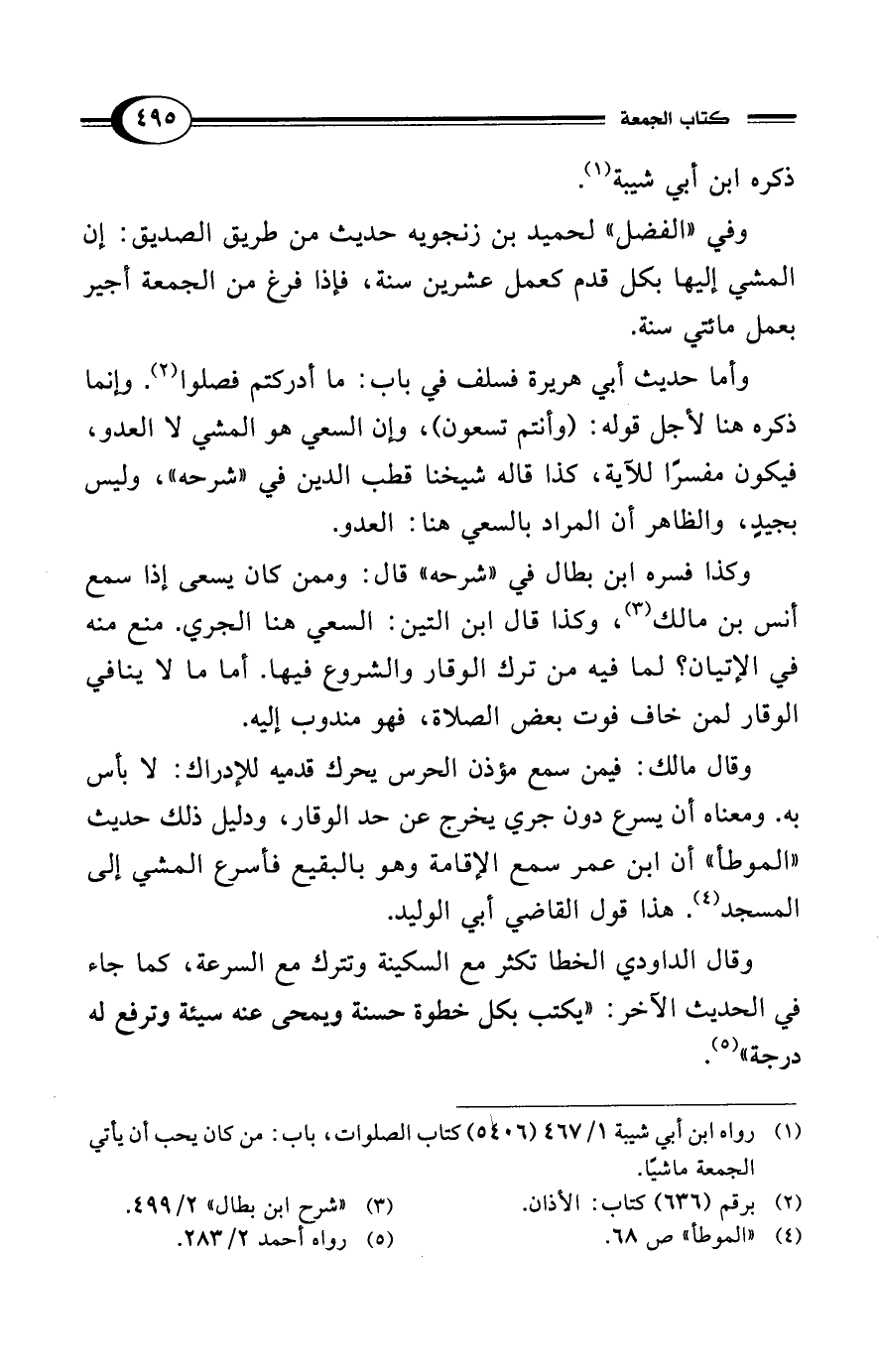 (¬1) رواه ابن أبي شيبة 1/ 467 (5406) كتاب الصلوات، باب: من كان يحب أن يأتي الجمعة ماشيًا.