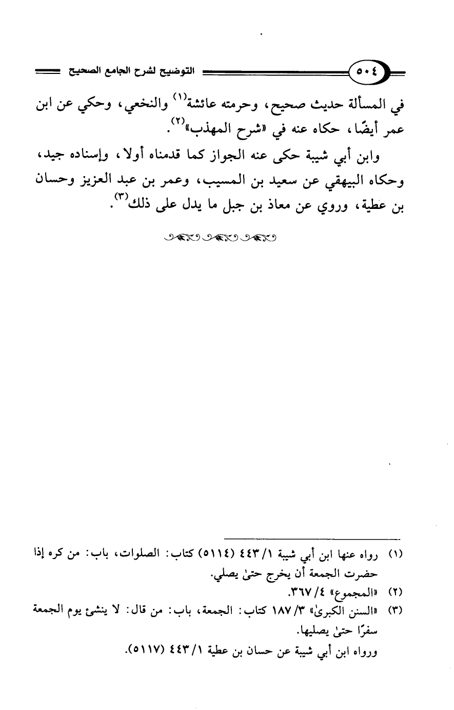 (¬3) "السنن الكبرى" 3/ 187 كتاب: الجمعة، باب: من قال: لا ينشئ يوم الجمعة سفرًا حتى يصليها.