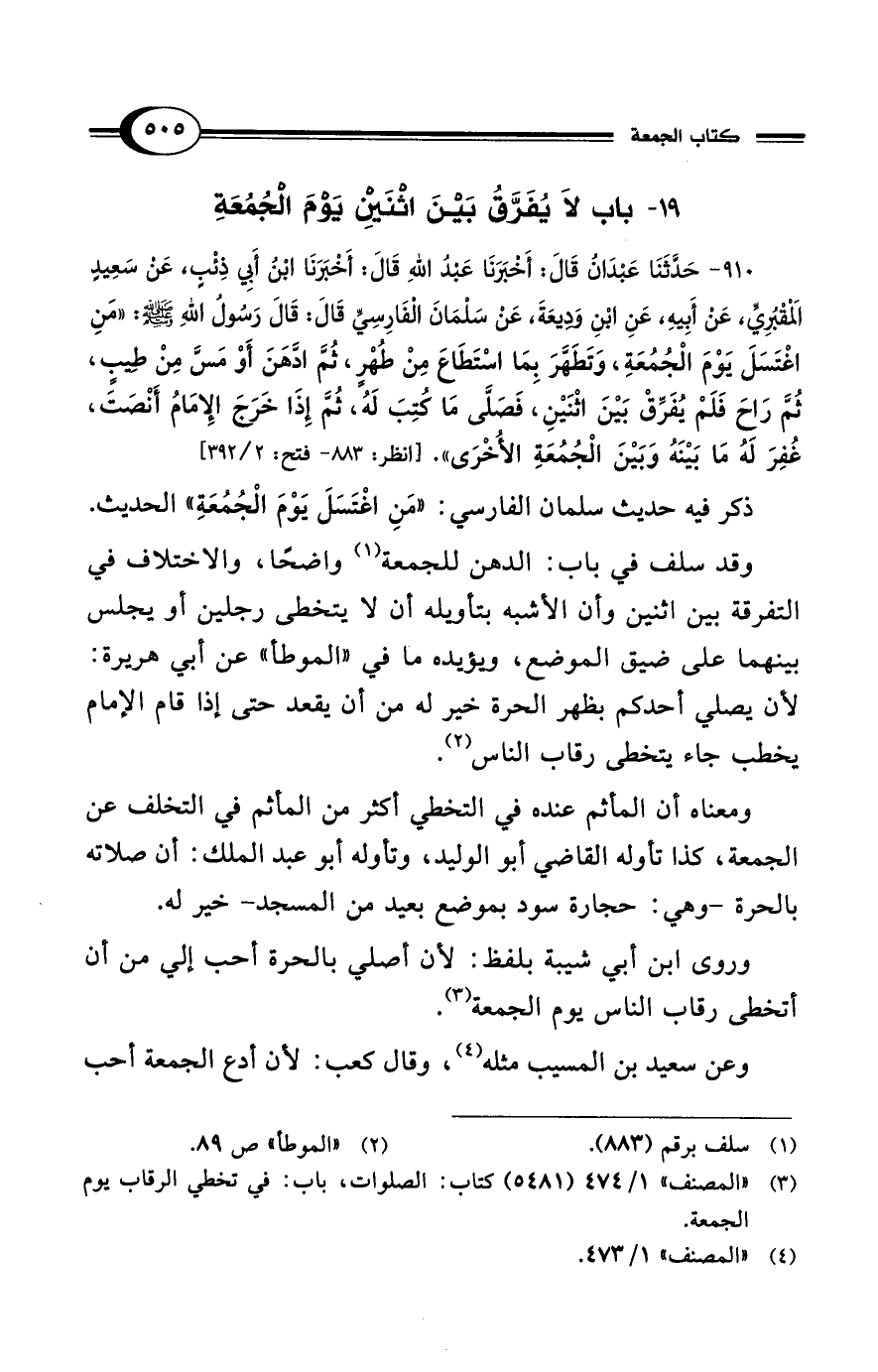 (¬3) "المصنف" 1/ 474 (5481) كتاب: الصلوات، باب: في تخطي الرقاب يوم الجمعة.