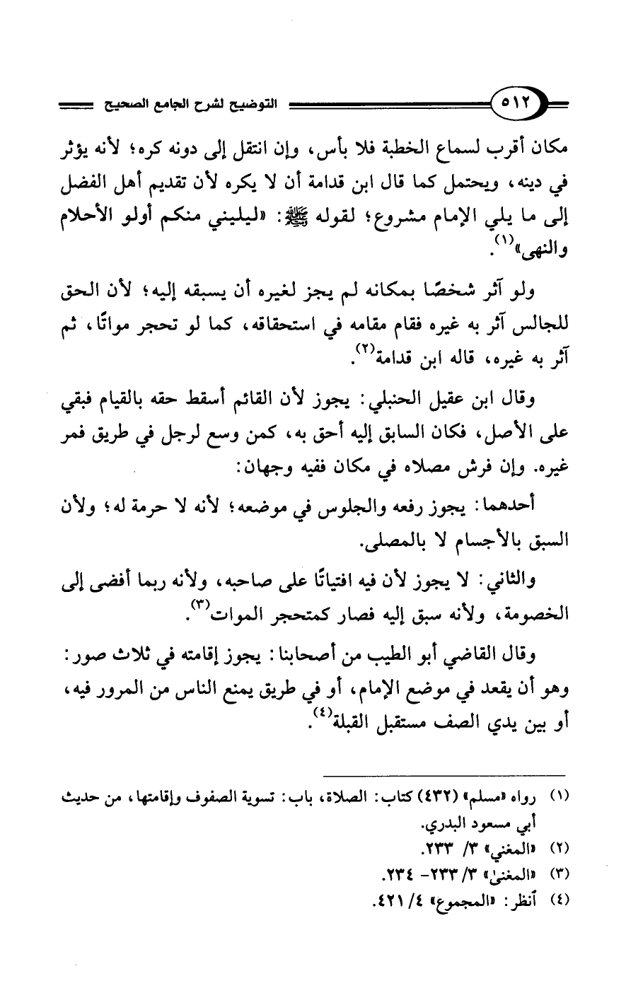 (¬1) رواه "مسلم" (432) كتاب: الصلاة، باب: تسوية الصفوف وإقامتها، من حديث أبي مسعود البدري.