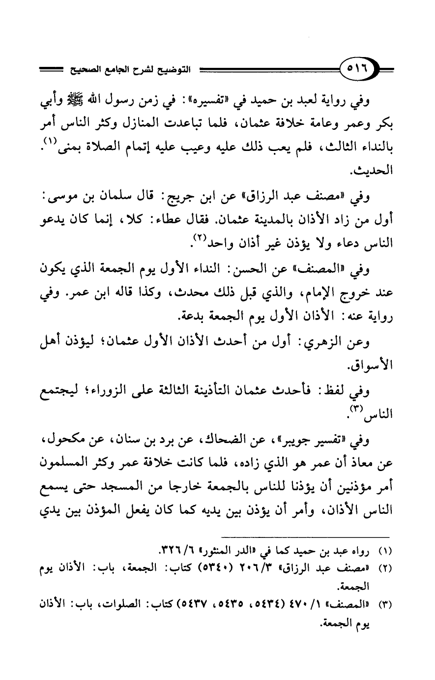 (¬2) "مصنف عبد الرزاق" 3/ 206 (5340) كتاب: الجمعة، باب: الأذان يوم الجمعة.