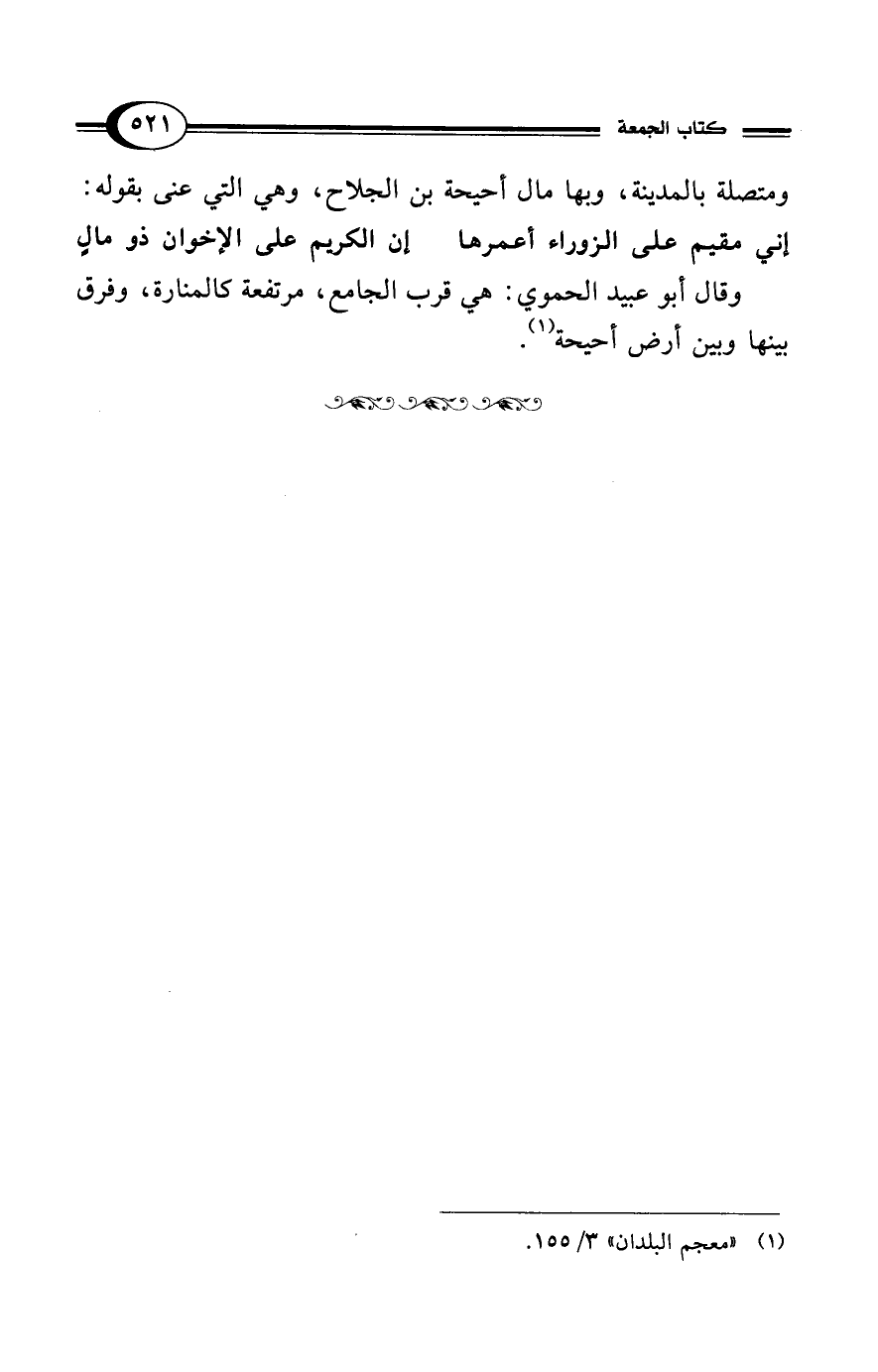 وقال أبو عبيد الحموي: هي قرب الجامع، مرتفعة كالمنارة، وفرق بينها وبين أرض أحيحة (¬1).